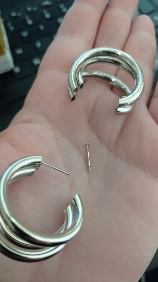 Серьги шли 3 нед до Минска. Целые. Больше по размеру ,чем думала. Смотрятся массивно. И воняют ппц. Кажется металл , но вонь фууу. Все пальцы воняют как примерила их.