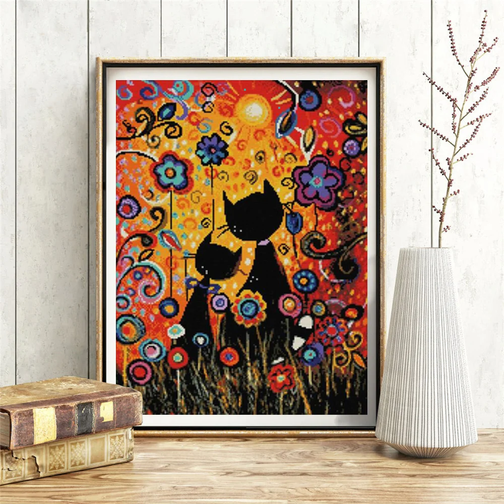 HUACAN вышивка крестиком наборы кошка белый холст украшение дома жи...