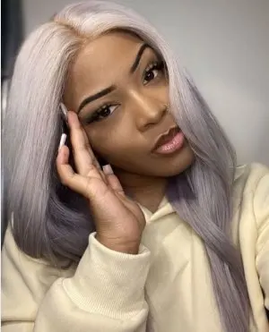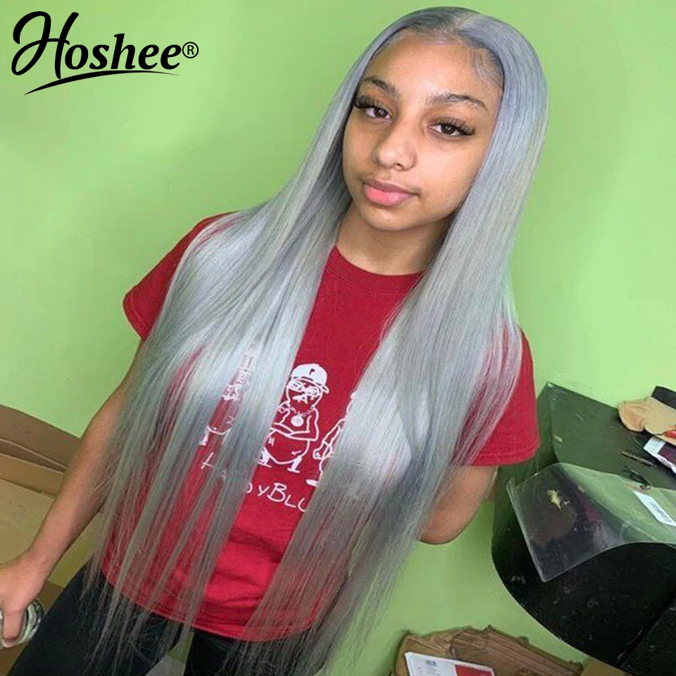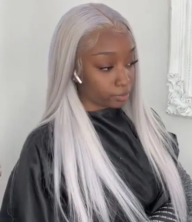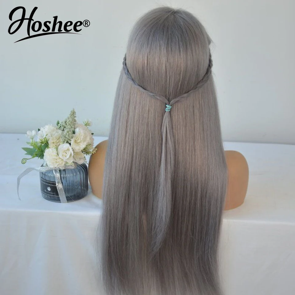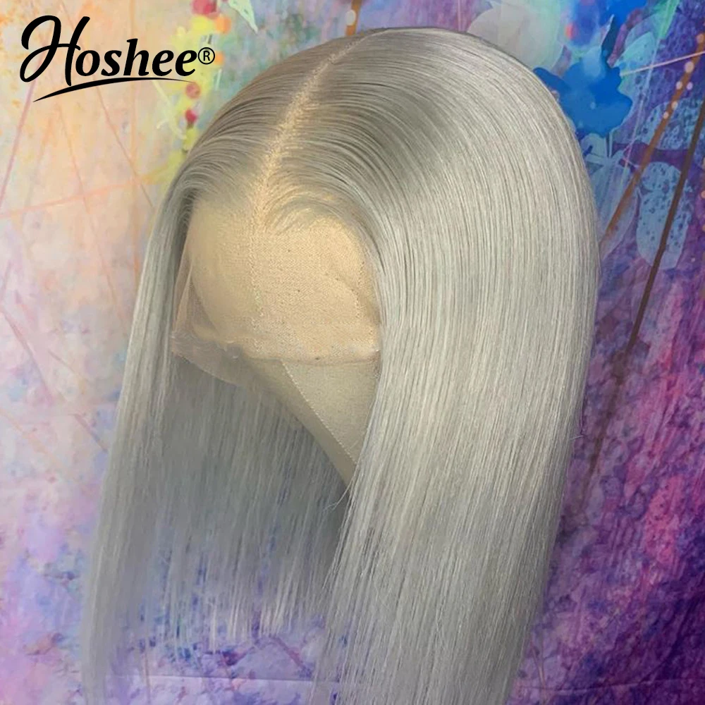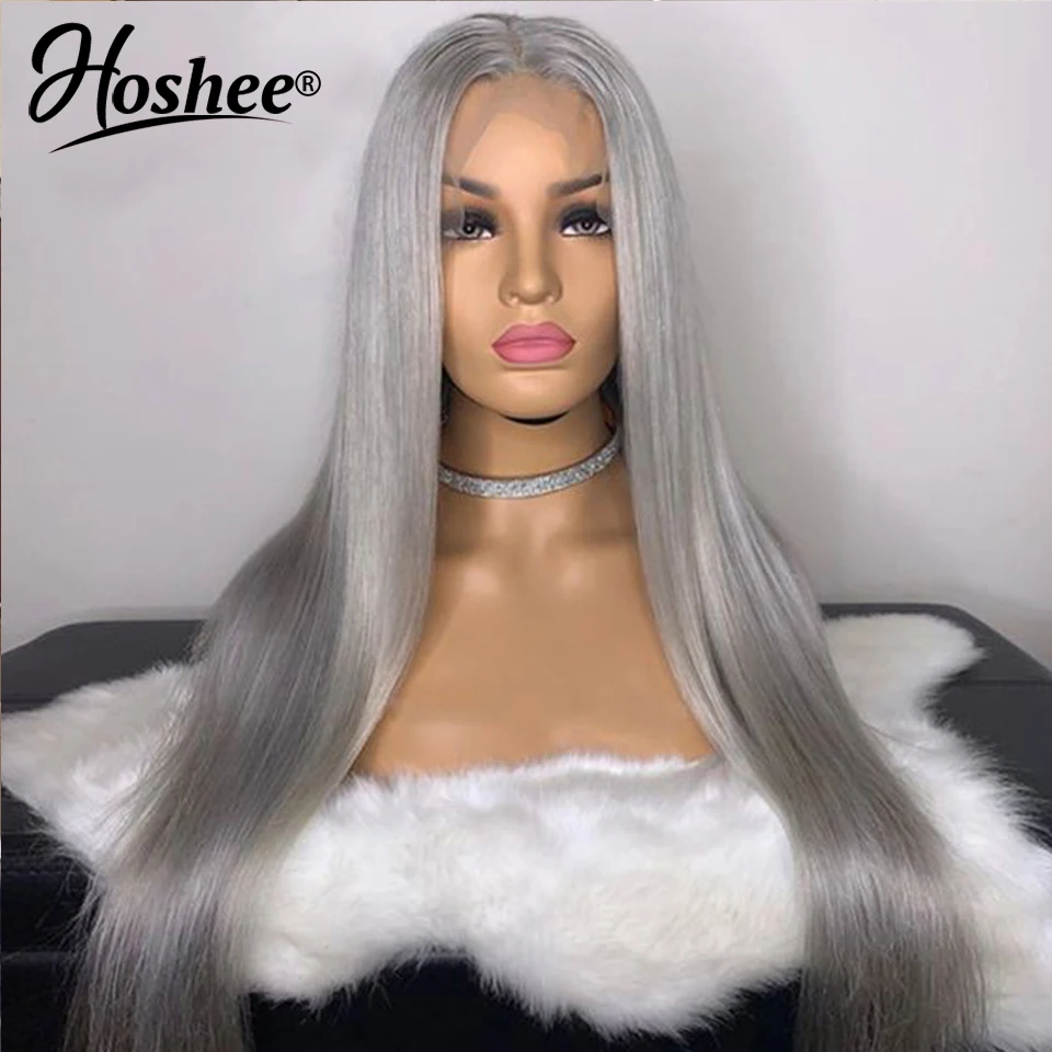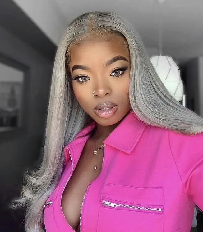 Парик женский из натуральных волос, серебристого цвета, с прозрачной кружевной передней частью