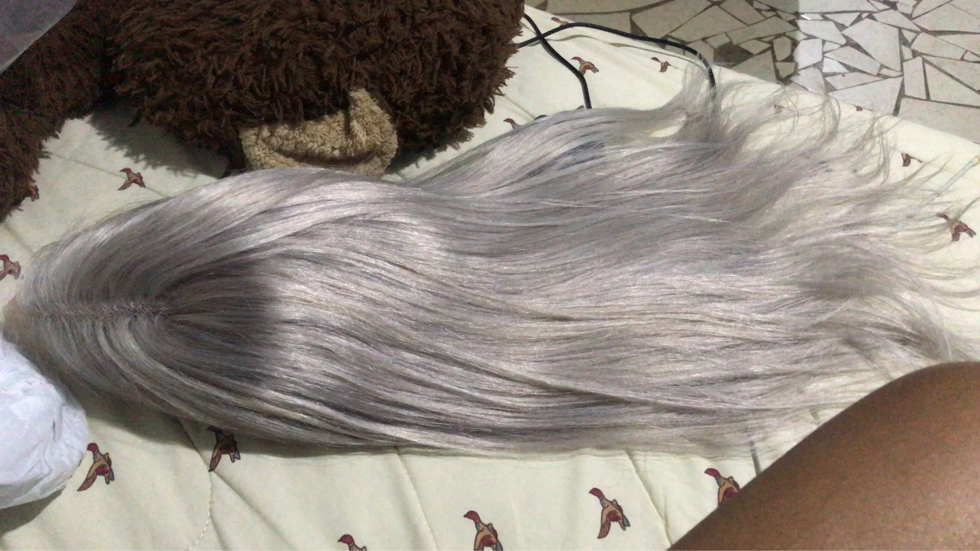 Мне очень нравится этот парик! Он такой мягкий, не линяет и так красив <3, он Платиновый Серый, но в некотором свете выглядит немного как фиолетовый цвет, в целом мои волосы на день рождения были успешными!