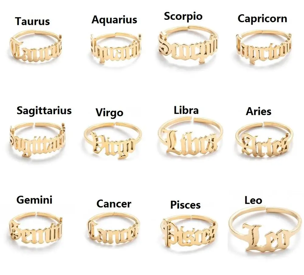 Libra Leo Aries буквы знак Шарм ювелирные изделия для женщин, 12 созвездий кольцо для мужчин и женщин на день рождения Мода ювелирные изделия аксессуары