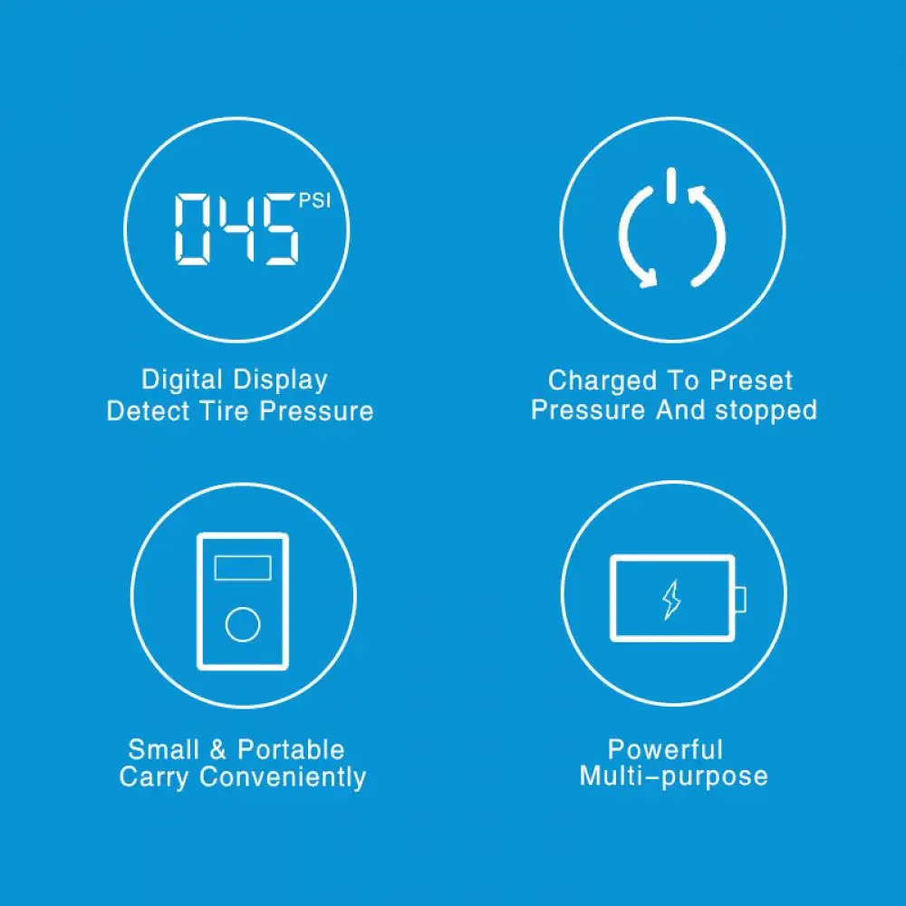 Давление в шинах слишком низкое или слишком высокое вызовет скрытую опасность. Например, если давление в шинах недостаточное из-за случайного пробежки шин, аварийная инфляция может помочь вам избавиться от проблем.
