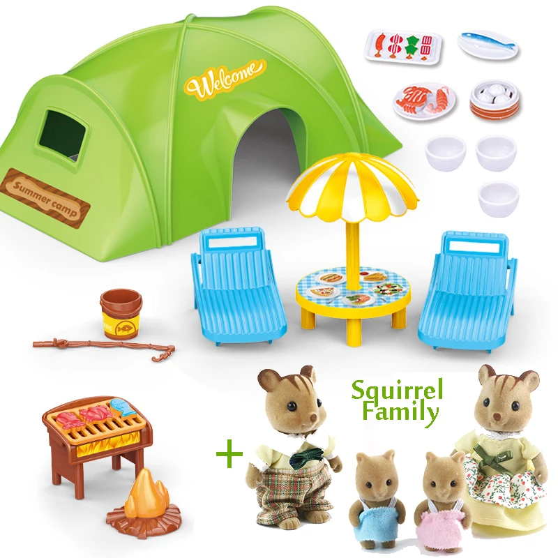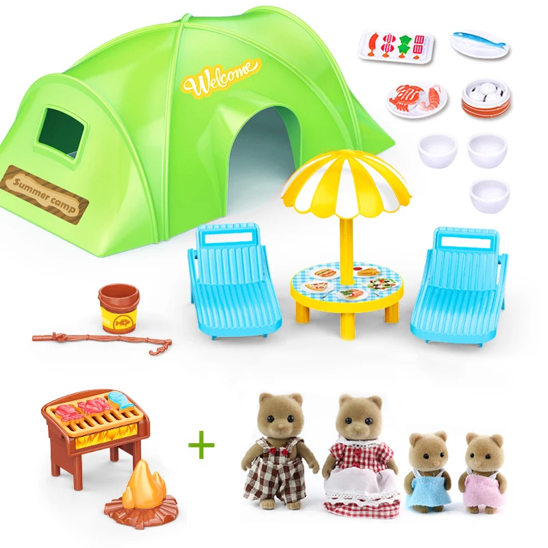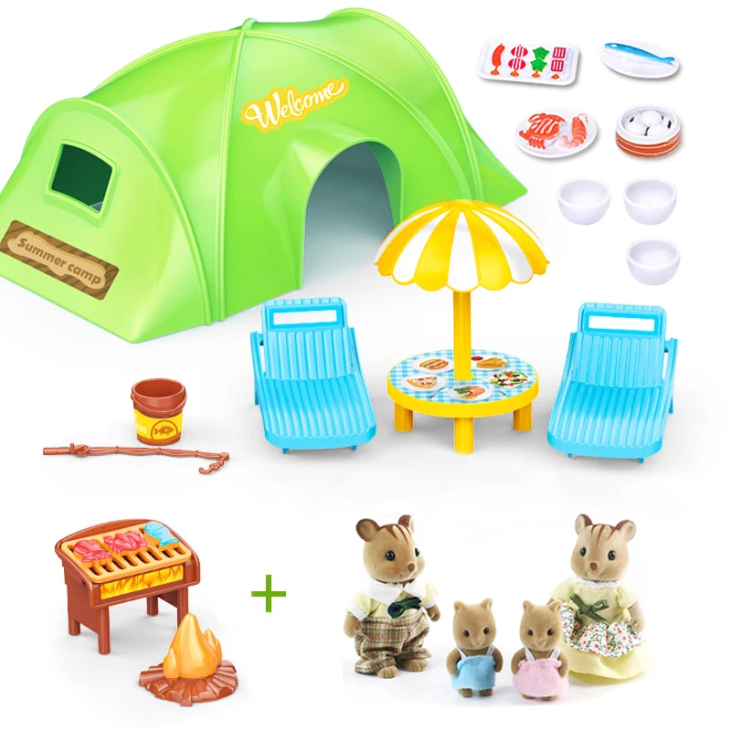 Маленький кукольный домик Miniatura, мебель сделай сам 112, семейная палатка для пикника с лесными животными, набор игрушек для семейного пикника, подарки для Ki
