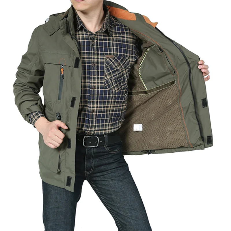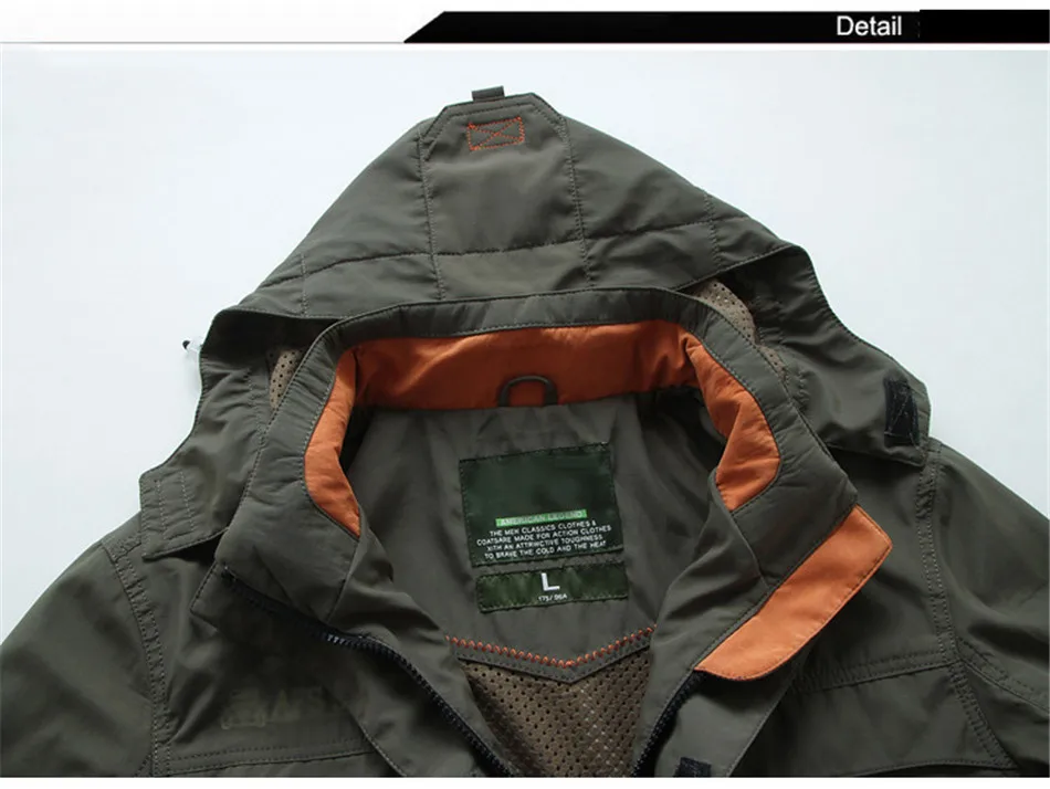 Мужская куртка-бомбер с несколькими карманами, водонепроницаемая ветровка, тактическая куртка, Мужская Повседневная дышащая хлопковая спортивная куртка с капюшоном