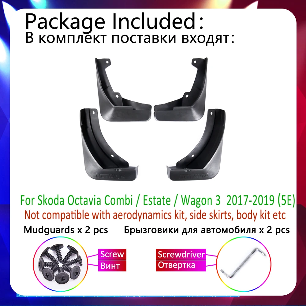 Автомобиль-грязи-клапаном шин крыло для Skoda Octavia 3 Комби универсал Estate MK3 A7 5E 2017 2019 Брызговики аксессуары для брызговиков авто-Товары