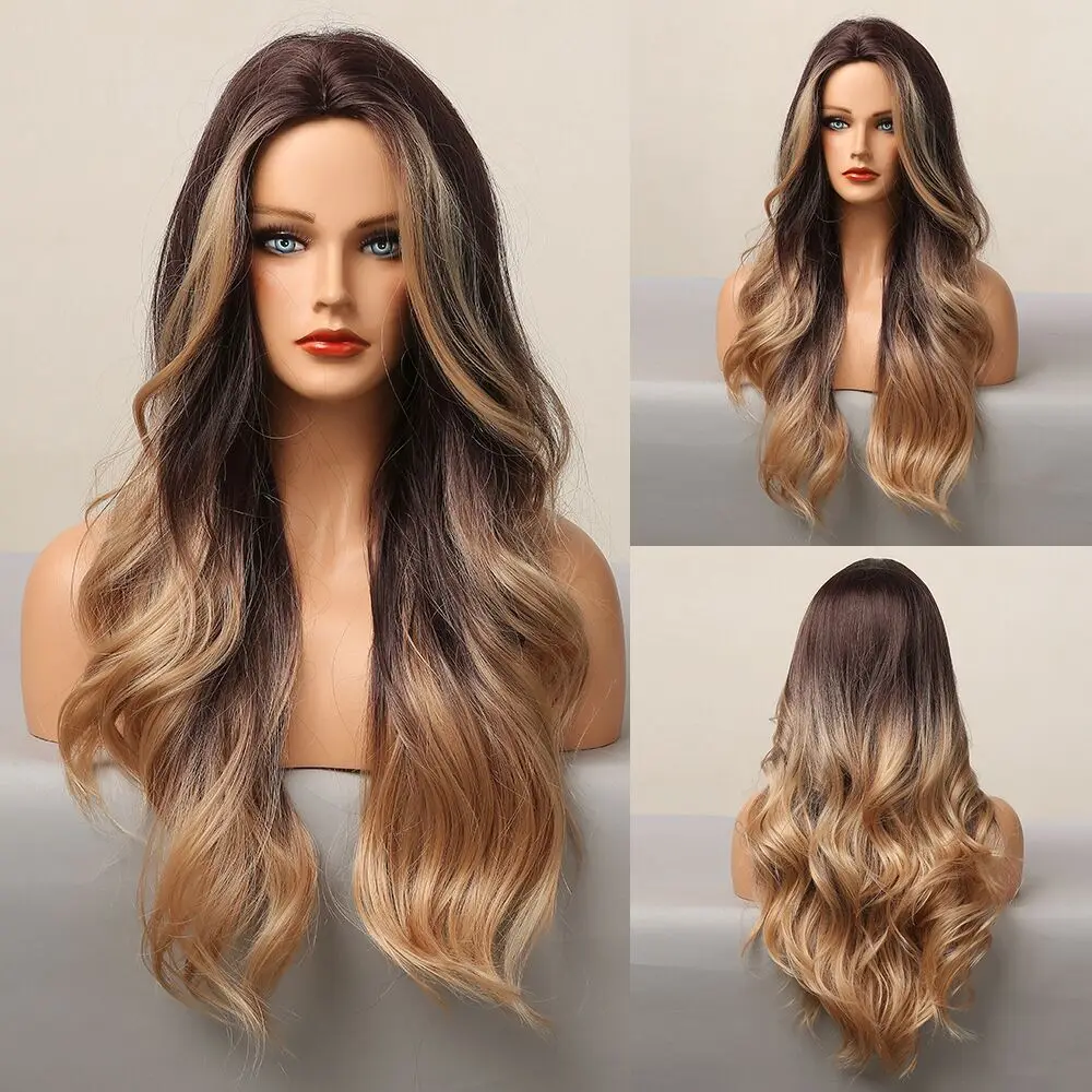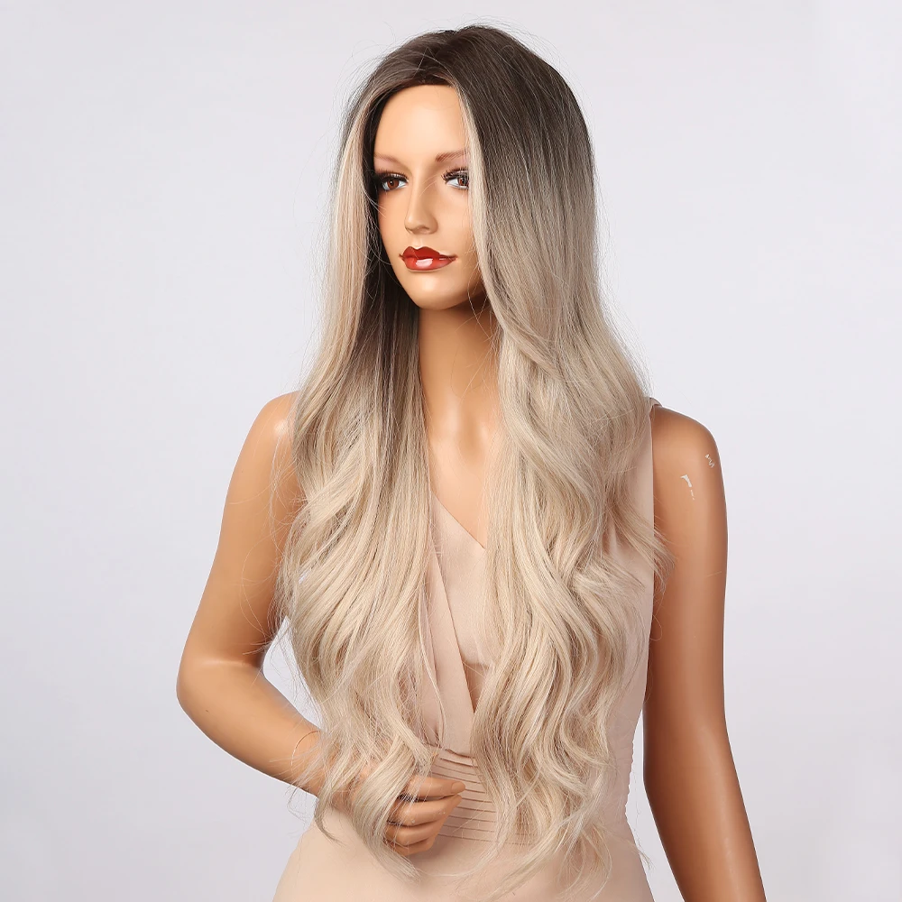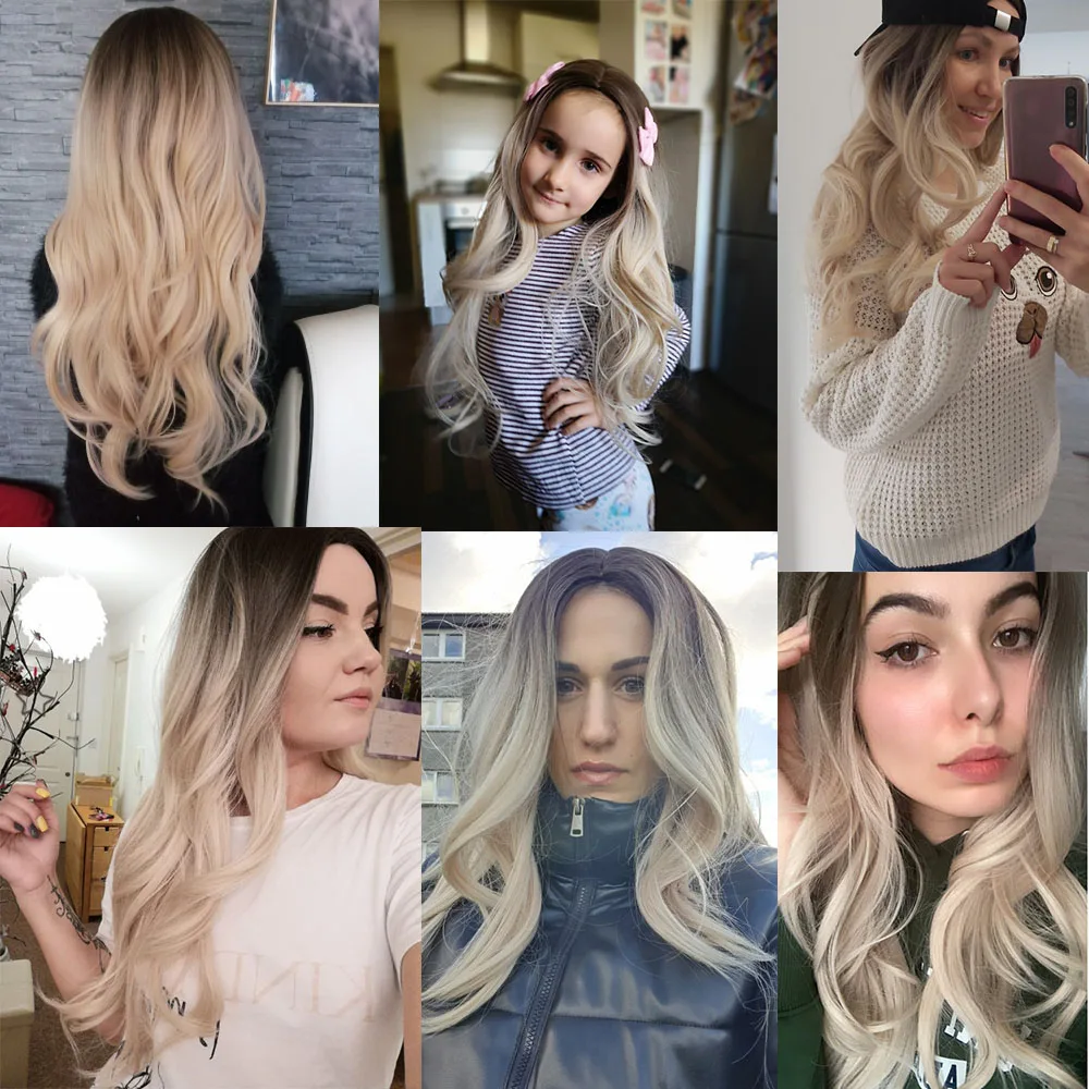 Парик женский из искусственных волос, Платиновый, коричневого цвета, с эффектом деграде, термостойкий
