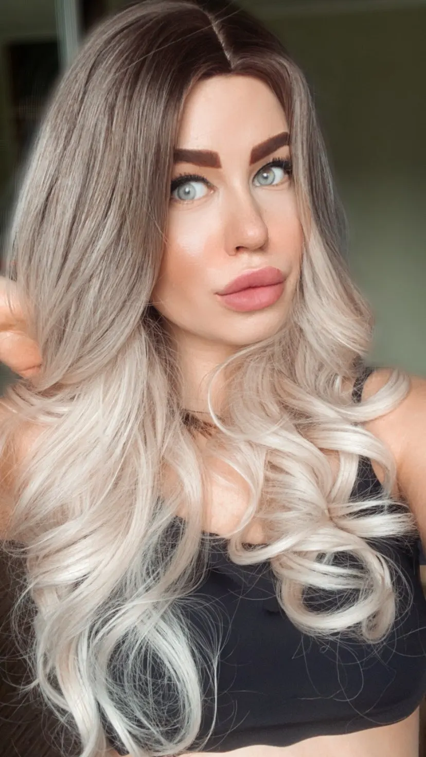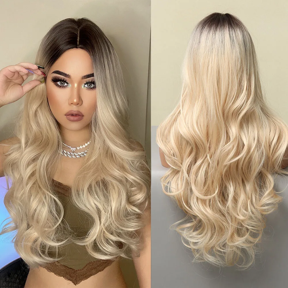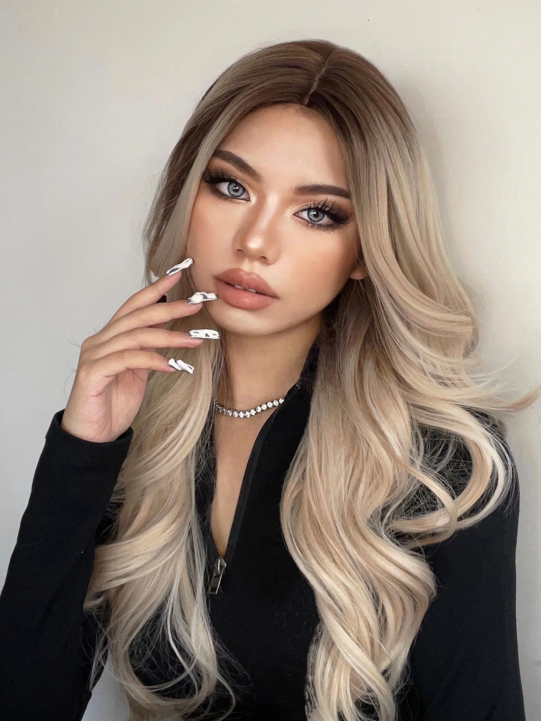 Парик женский из искусственных волос, Платиновый, коричневого цвета, с эффектом деграде, термостойкий