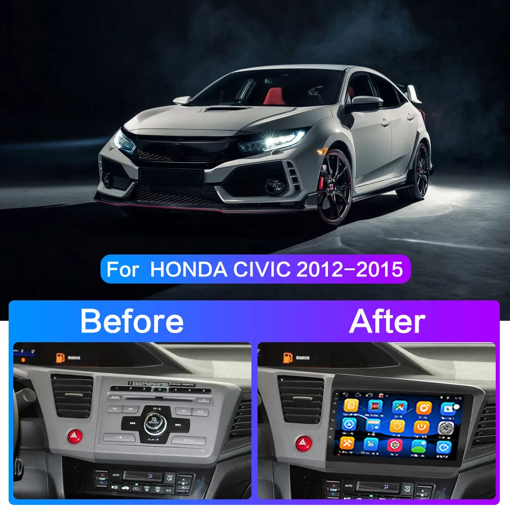 Автомобильный мультимедийный плеер для HONDA CIVIC 2012, 2013, 2014, 2015, Android 9,0, навигация, 4 Гб + 64 ГБ, 2 din, DSP, Wi-Fi, 4G, SIM, радио, видеоплеер