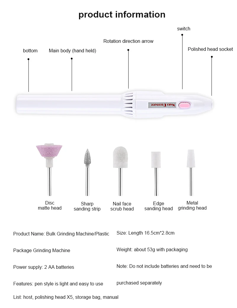 Электрическая машинка для маникюра и педикюра, шлифовальный аппарат с насадкой для полировки ногтей