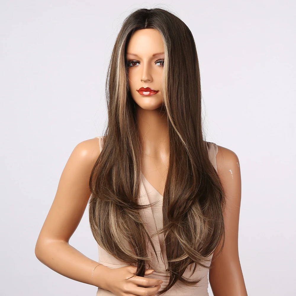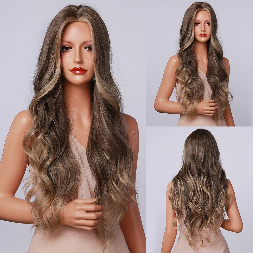 Женский синтетический парик с эффектом омбре henmargu, Длинные темно-коричневые волнистые парики средней длины, термостойкие парики для косплея