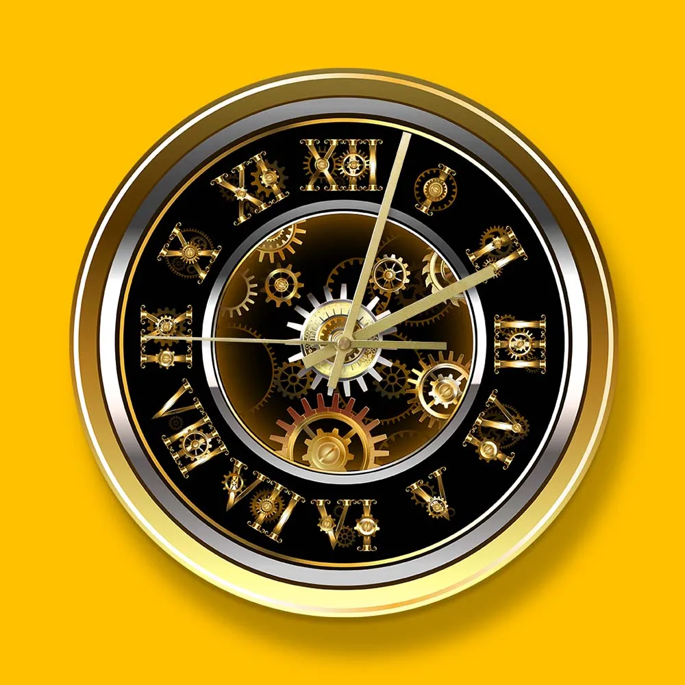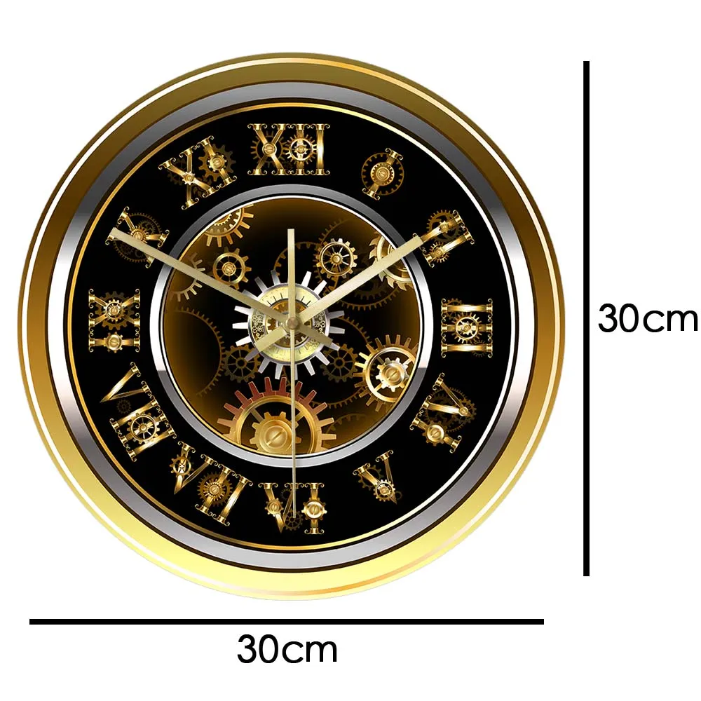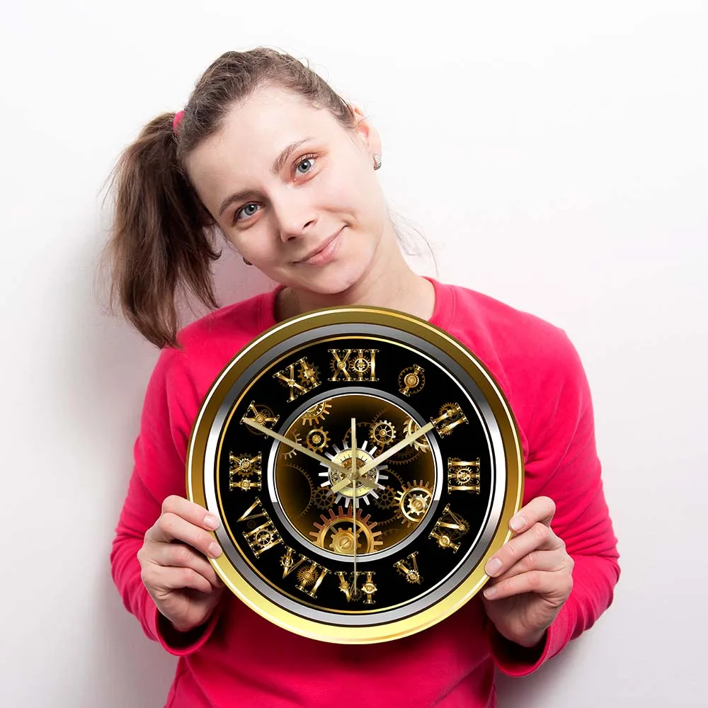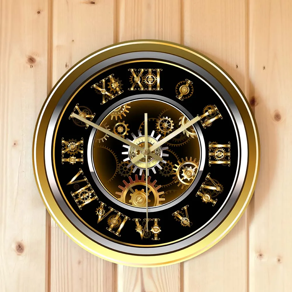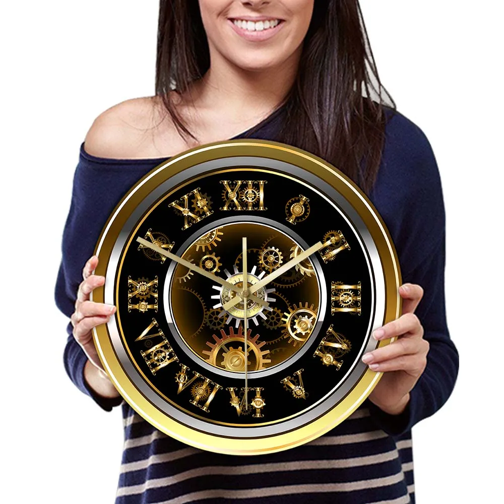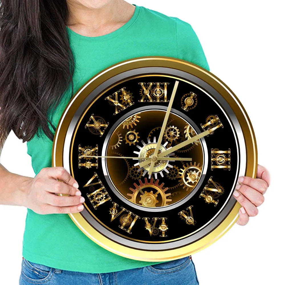 Часы настенные в стиле стимпанк, винтажные золотистые дизайнерские часы для спальни, домашний декор, с принтом римских цифр