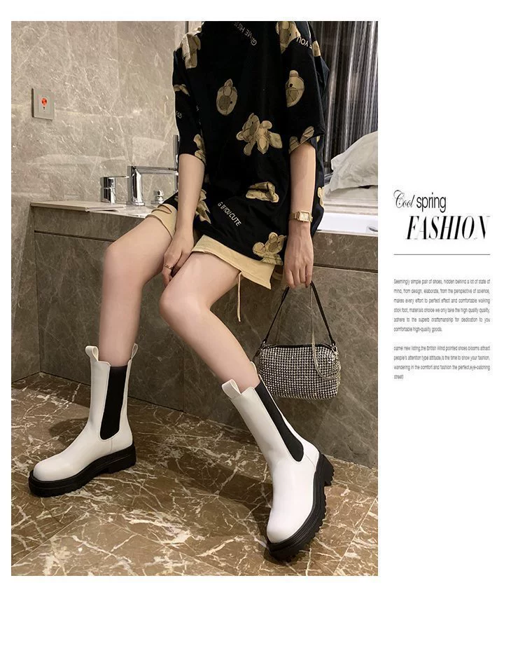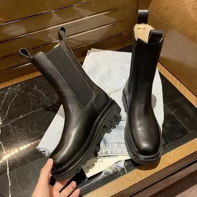 Женские ботильоны на массивном каблуке, женская обувь, Осенние брендовые дизайнерские ботинки челси, женские ботинки на платформе, модные ботинки Lasdies