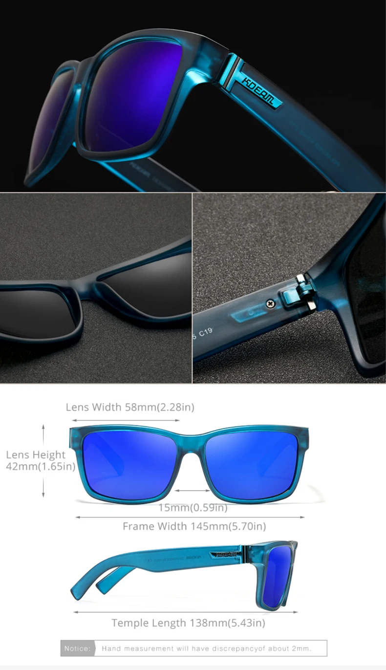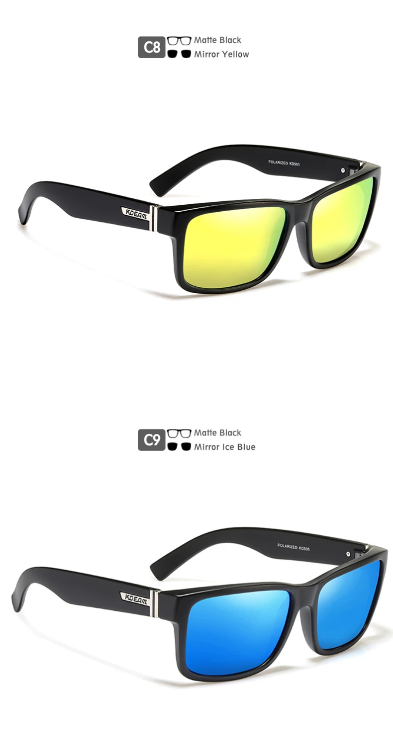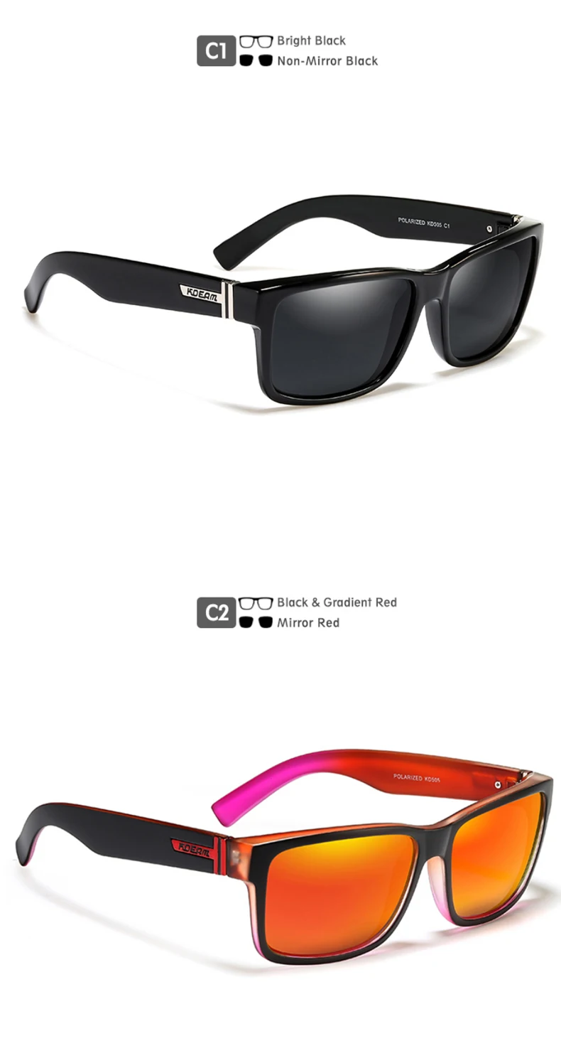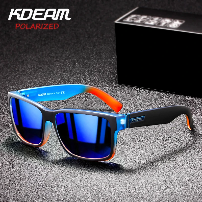 Солнцезащитные очки KDEAM N12 мужские, модные квадратные поляризационные, в спортивном стиле, с синими, красными зеркальными линзами, фотохромные