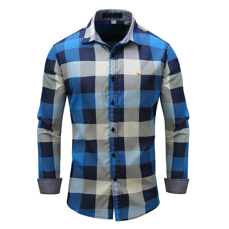 Рубашка мужская с вышивкой, модная блуза из 100% хлопка, с длинным рукавом, мягкая блуза, европейские размеры, лето-весна-осень