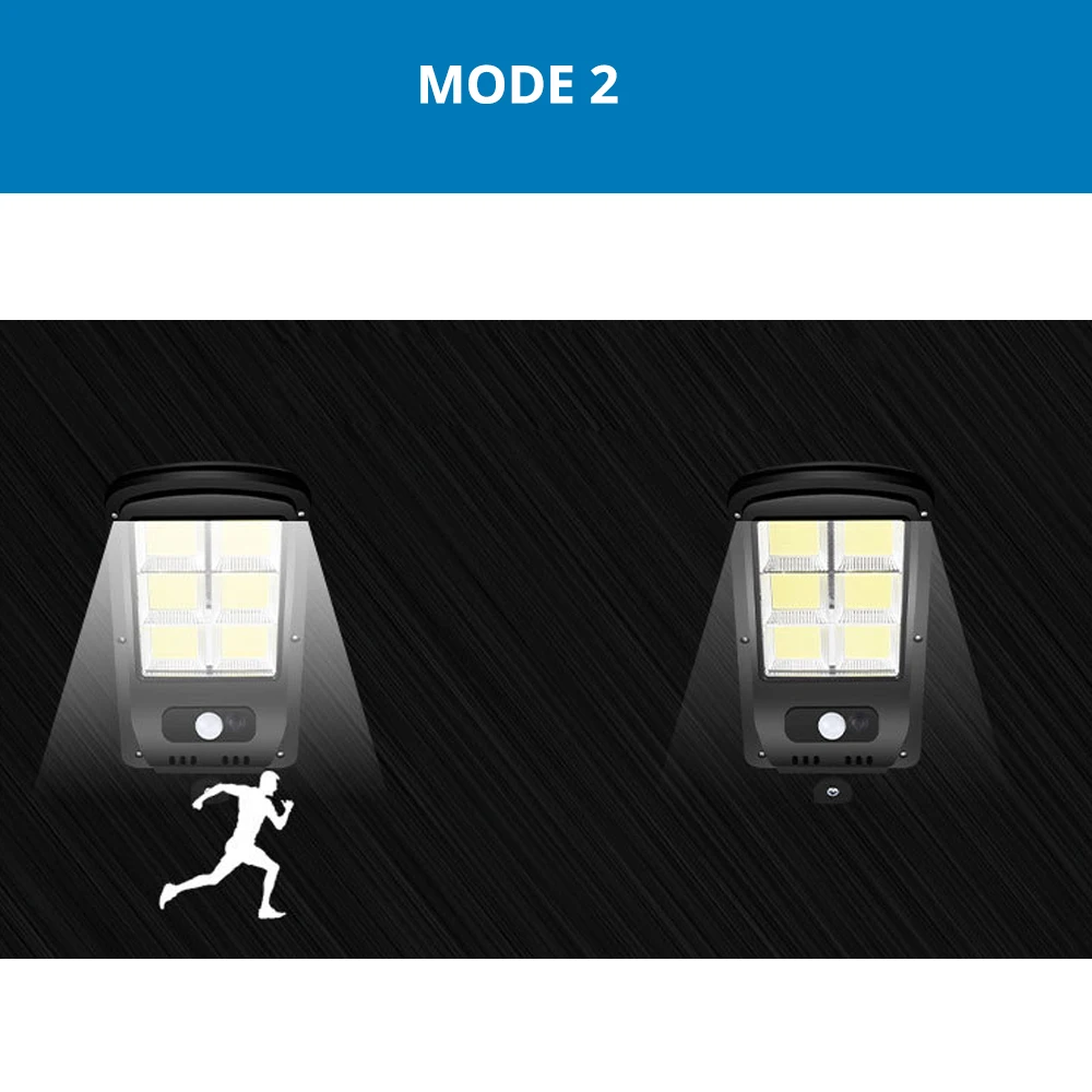 Освещение кнопок режим:-Выключение: режим выключения, светодиодный светильник красного цвета;-Первая передача: некоторые люди приходят, яркий светильник в течение 15-30 секунд, когда не выключается ни один светильник;-Вторая передача: некоторые люди приходят, яркий светильник в течение 15-30 секунд, и когда их нет, светильник всегда яркий и слабый;-Третья передача: независимо от того, есть ли кто-то, и всегда горит слабый светильник.Время зарядки: 6 часов на солнцеУгол срабатывания PIR: 120 °Расстояние срабатывания: 8-10 метров