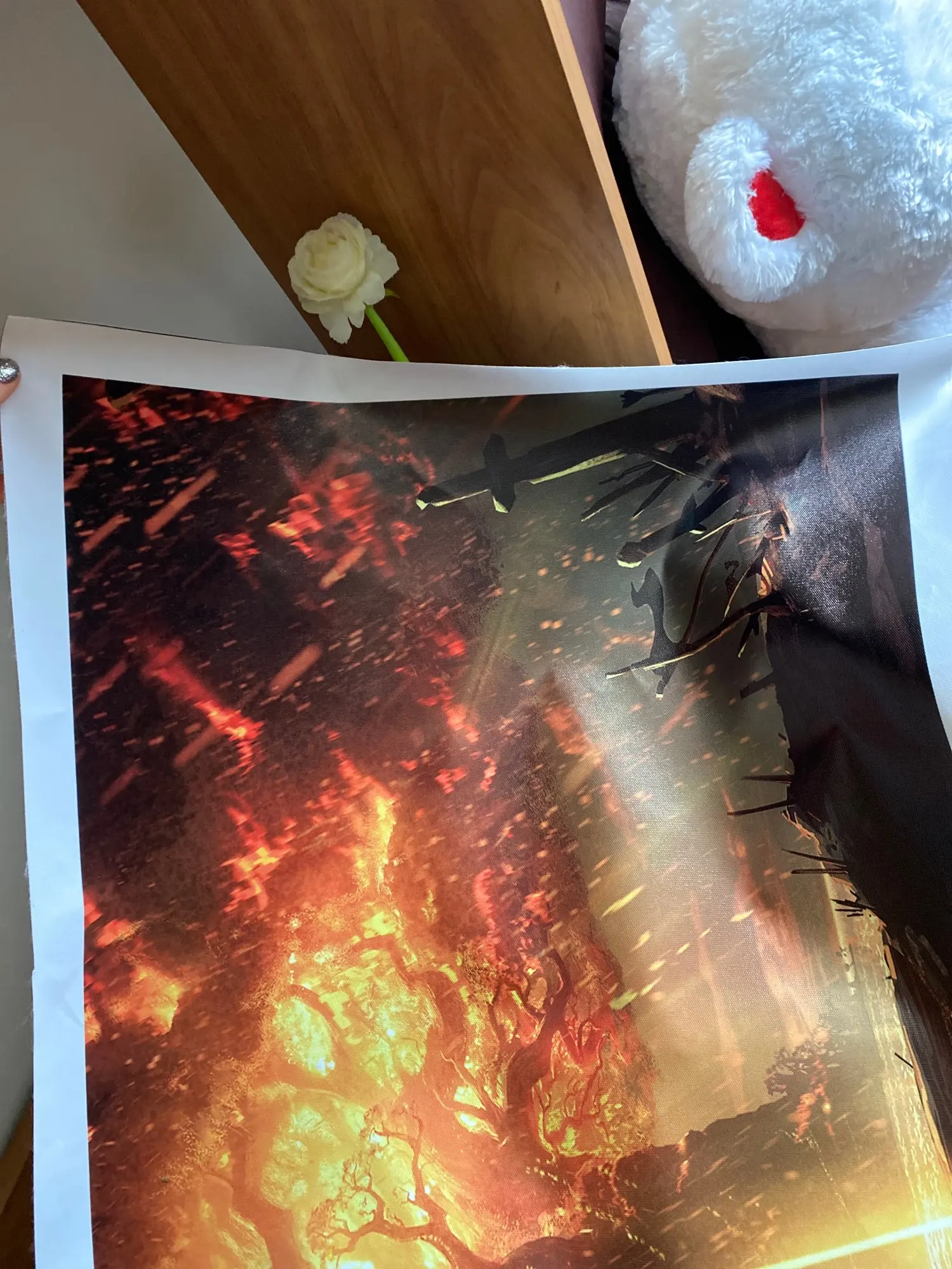Не ожидала, что плакат будет таким плотным, напоминает холст и это огромный плюс, хорошо прорисовано, единственное вырезано немного неровно , но это не беда, всё равно белую часть собираюсь подрезать