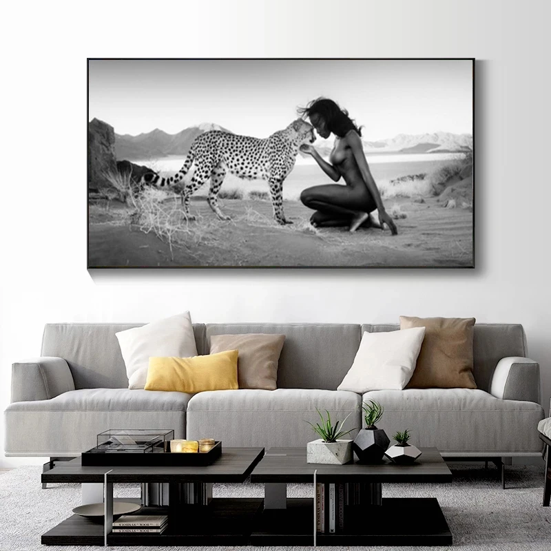 Постеры и принты человека и природы, снег, леопард и телесные женщины, холст, картины, настенное искусство, картины для декора гостиной