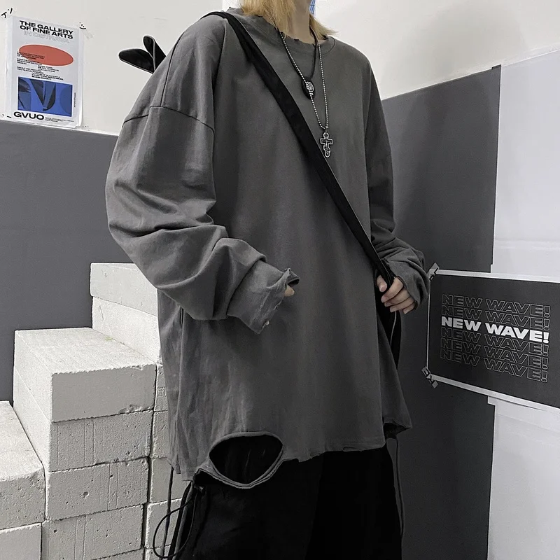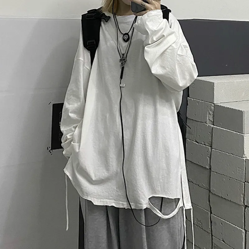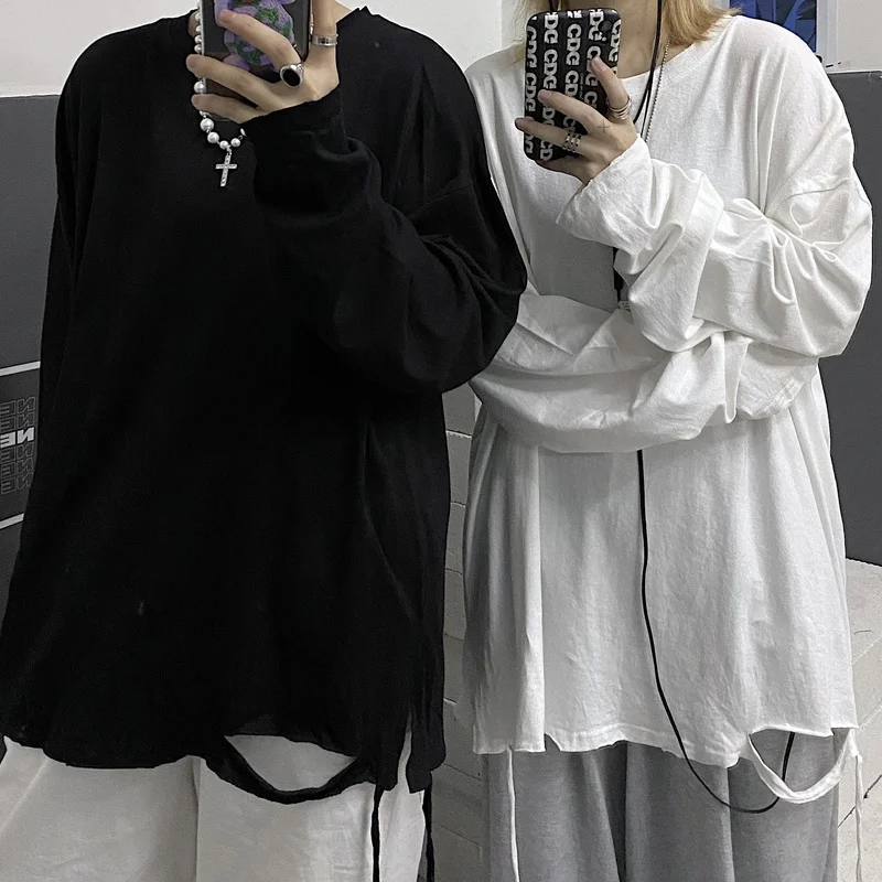 Женская футболка с длинным рукавом, белая или черная футболка в Корейском стиле, с рисунком низа, большие размеры