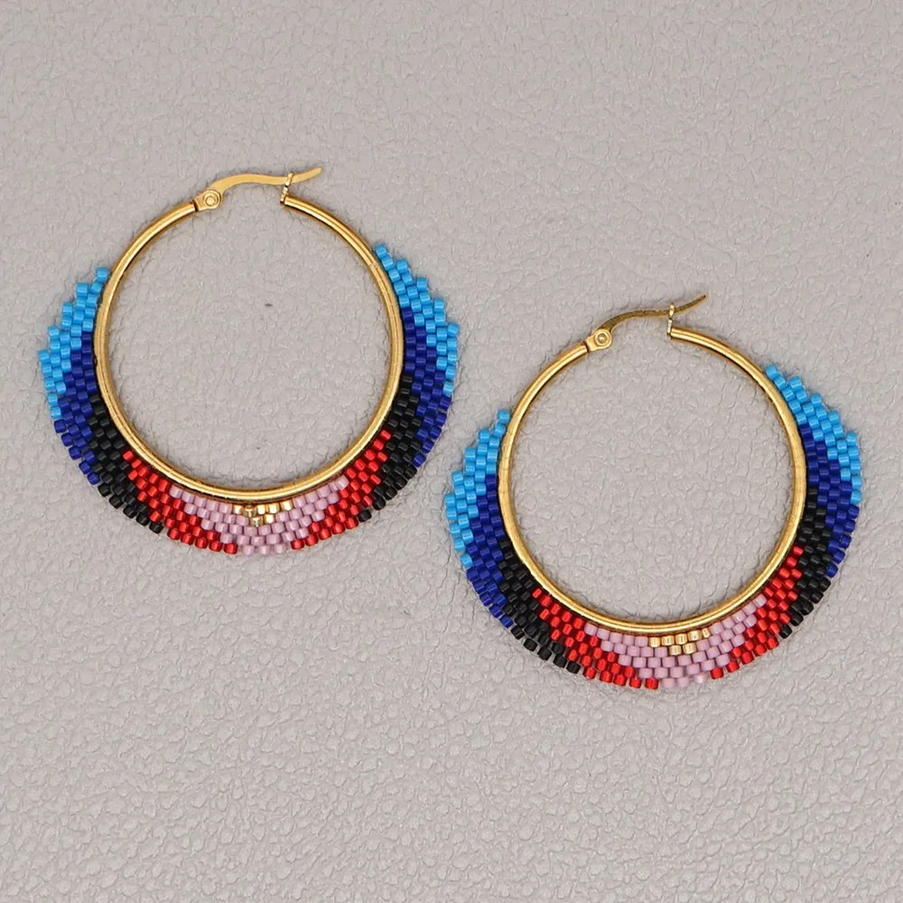 Go2boho Miyuki, серьги, ювелирные изделия, богемные серьги-кольца ручной работы для женщин, ювелирные изделия 2021, трендовые богемные серьги, цветное кольцо для ушей