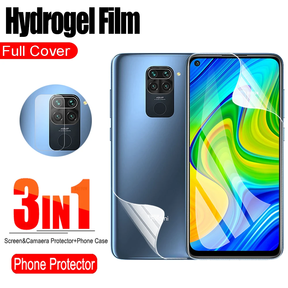 3в1 защита для экрана Передняя Задняя полная крышка Гидрогелевая пленка не стекло для Xiaomi Redmi Note 9 9Pro 9Promax 9S Защитная пленка для объектива камеры