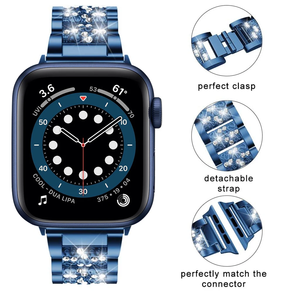 Ремешок для часов Apple Watch series, блестящий синий браслет для iwatch 38 мм 42 мм 6 5 4 SE 40 мм 44 мм