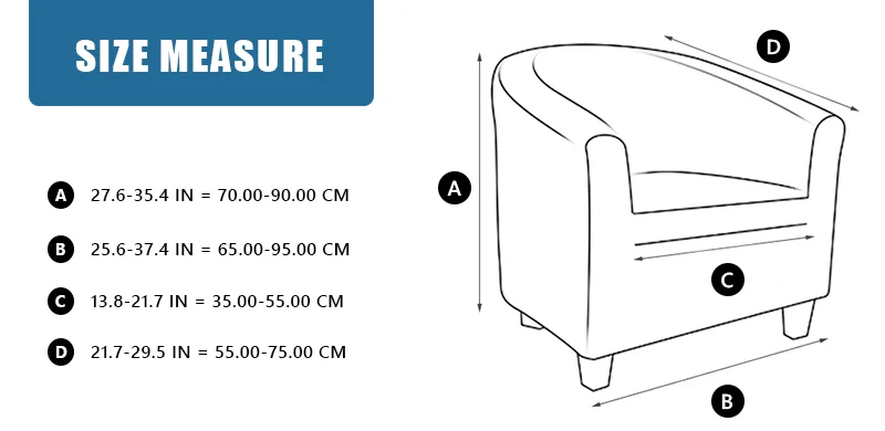 A: 27,6-35,4 дюйма = 70,00-90,00 смB: 25,6-37,4 дюйма = 65,00-95,00 смC: 13,8-21,7 дюйма = 35,00-55,00 смD: 21,7-29,5 дюйма = 55,00-75,00 см