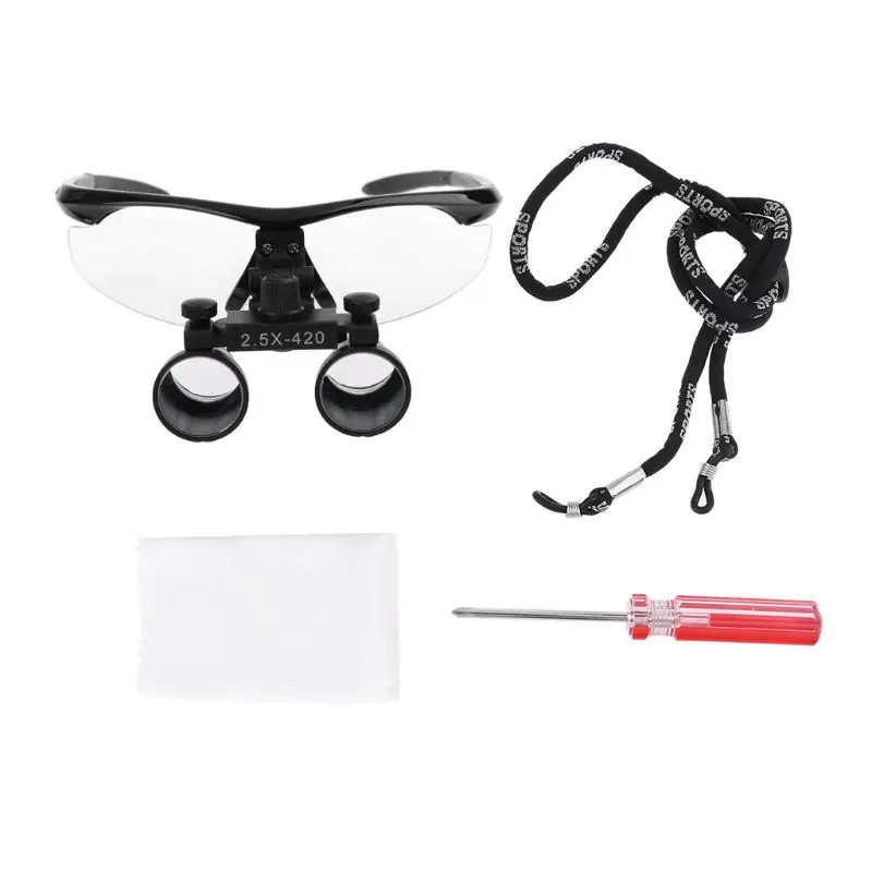 Бинокулярные лупы, стоматологические очки, лупы, защитные очки, очки 2.5XСпецификация:Maginification: 2.5xЦветная Пластиковая РамкаРабочее расстояние: 440-540 ммПоле зрения: 130 ммРазмер: 20 см x 14 смОбратите внимание: 1 см = 10 мм = 0,39 дюймовПосылка включает в себя:1 * 2.5X зубная Лупа с Goggle1 * ремешок на голову1 * ткань1 * Винт1 * Руководство пользователя1 * коробка для хранения