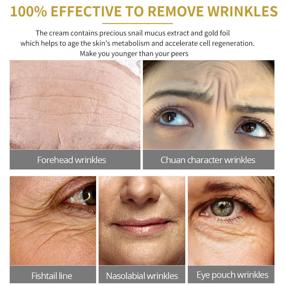 1. Эссенция улитки, гиалуроновая кислота, 24k Золотая фольга способствует производству коллагена, делая кожу более упругой и нежной