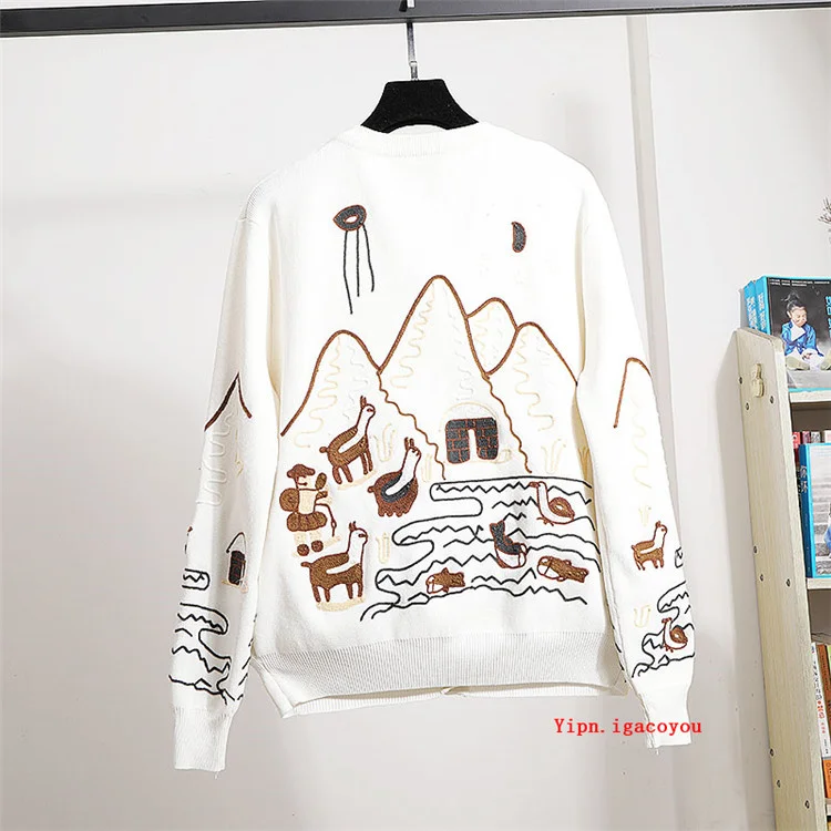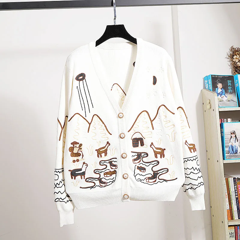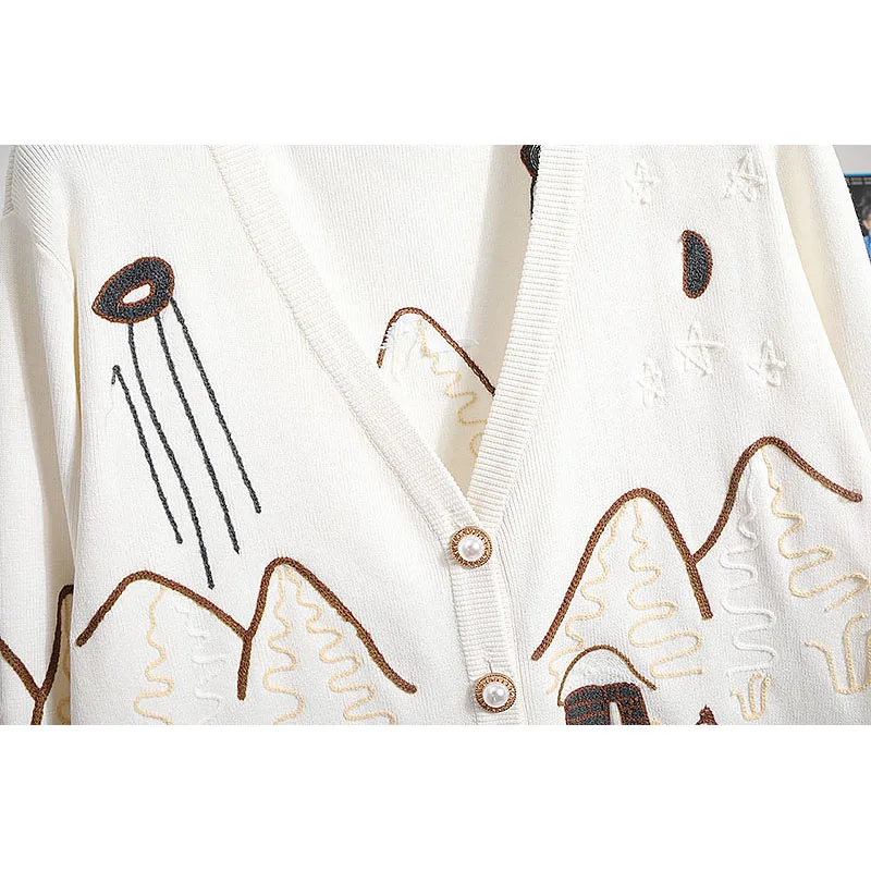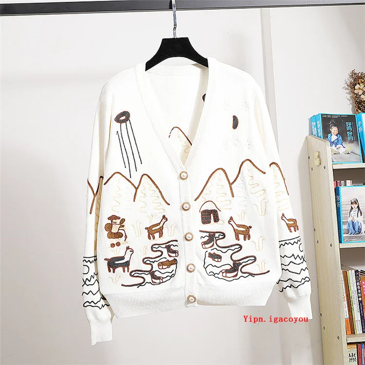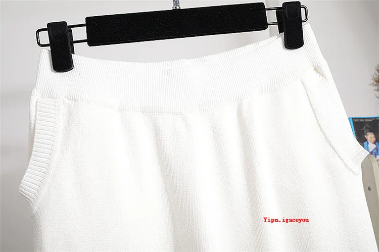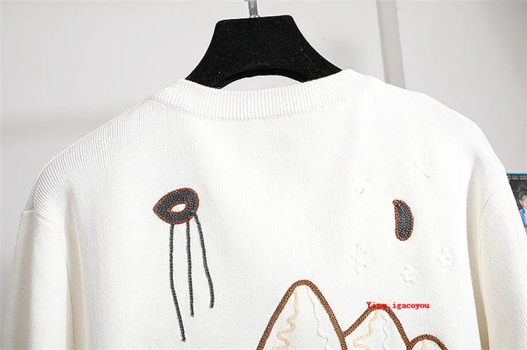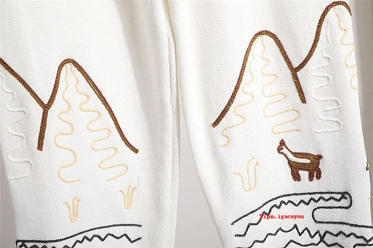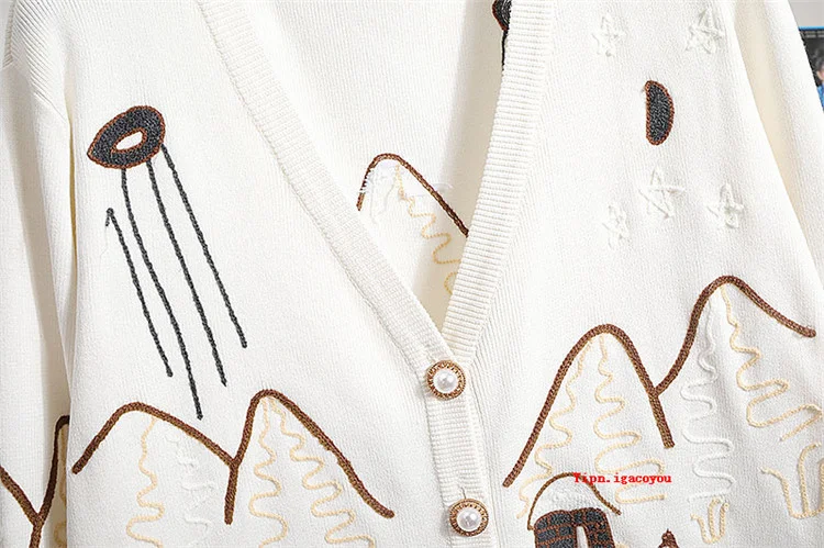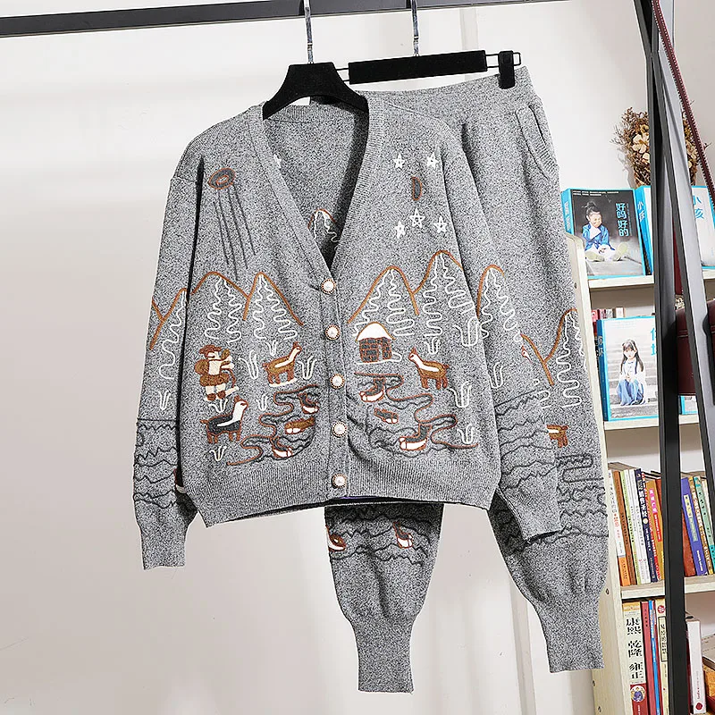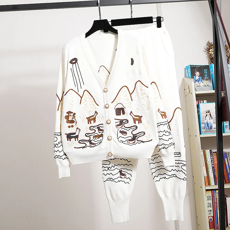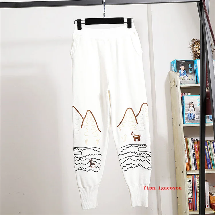 Женский спортивный костюм с вышивкой, белый или серый трикотажный комплект из двух предметов, кардиган, свитер и брюки-карандаш, Свободный Повседневный Трикотажный костюм