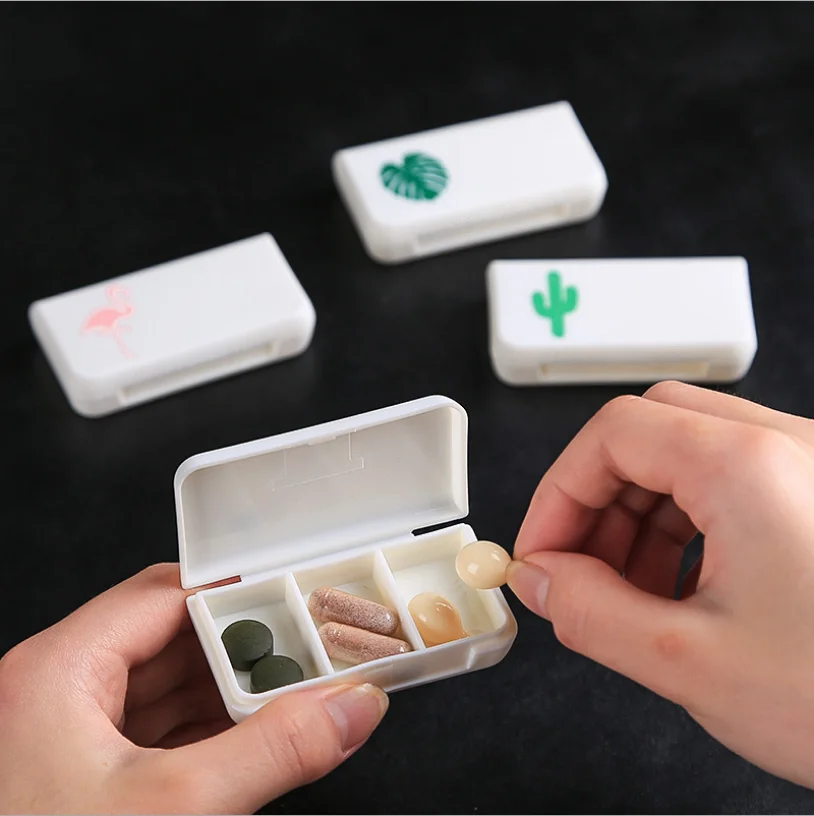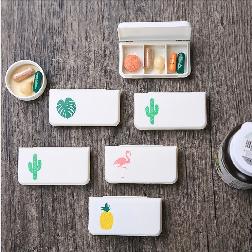 Медицинский Набор для таблеток, фламинго, кактус, лист, диспенсер, дозатор, маленький комплект, органайзер, чехол, с 3 решетками, 1 шт.