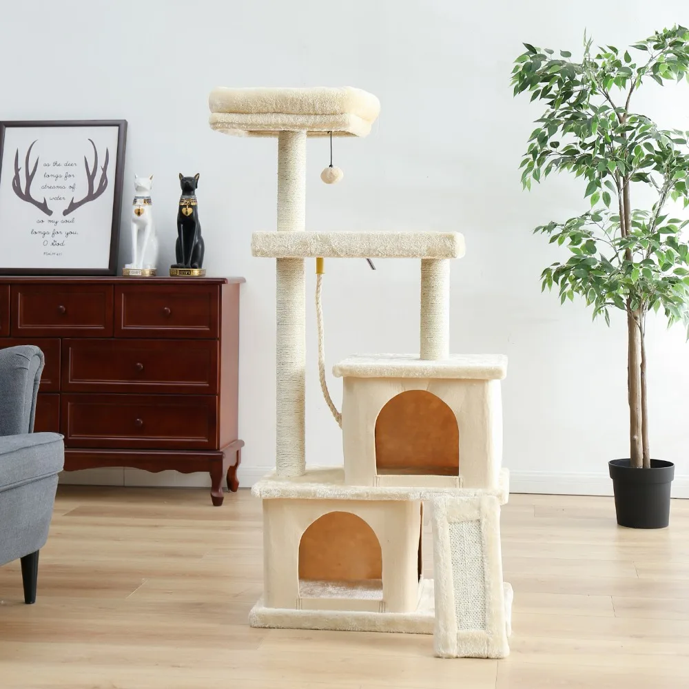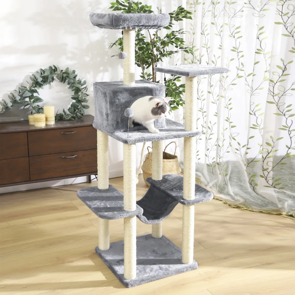Домик на дереве для кошек, многоуровневый, из натурального сизаля, с корзиной, для защиты мебели