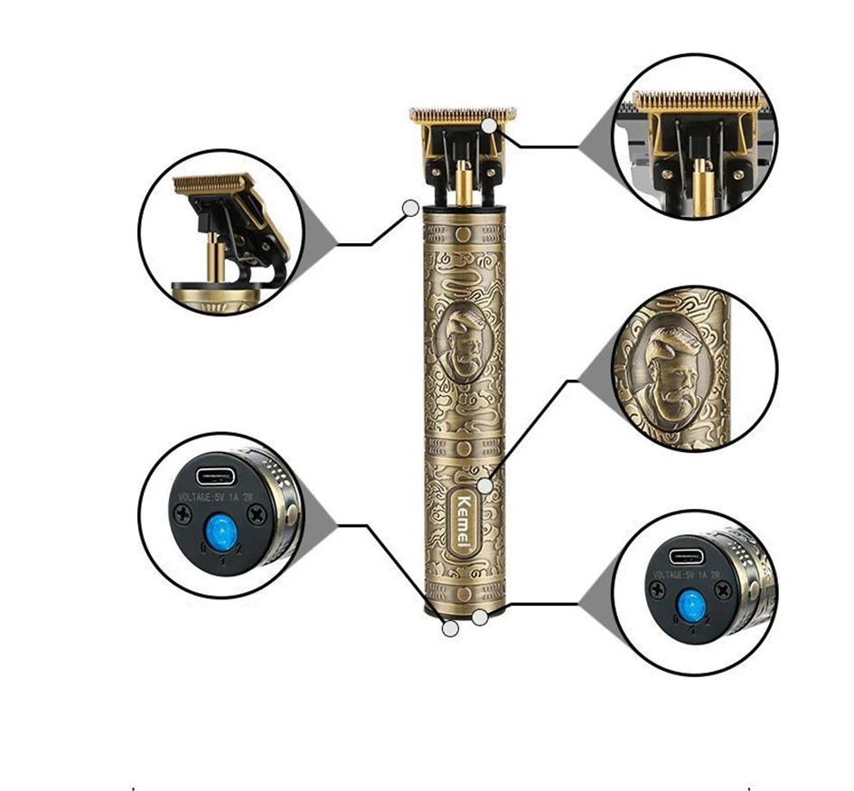 Профессиональная машинка для стрижки волос Kemei KM-700D, парикмахерский триммер для волос, для мужчин, в стиле ретро, с изображением Будды, беспроводная, Edge электрическая машина для резки волос