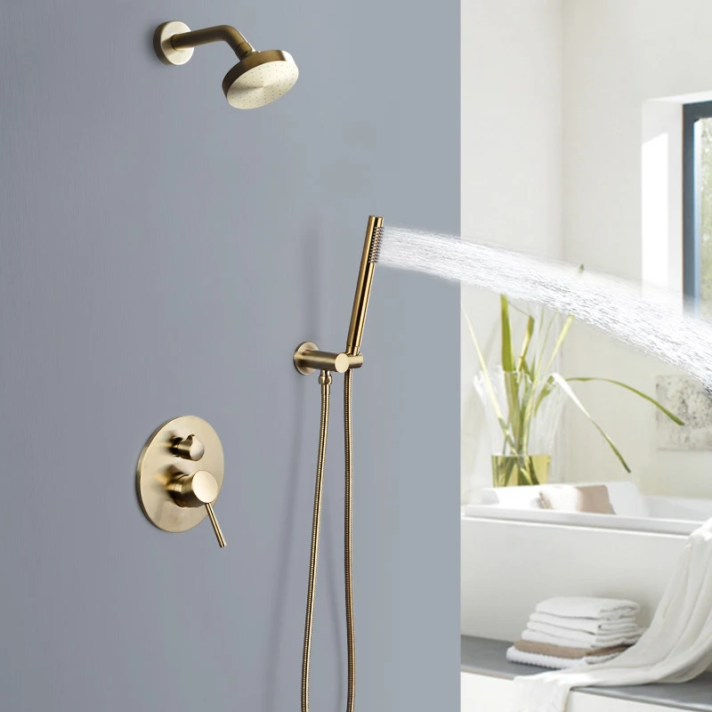 Круглый Роскошный дождевой смеситель для ванной комнаты, набор для душа, настенная система с дождевой насадкой, ручной смеситель для душа, матовый золотой
