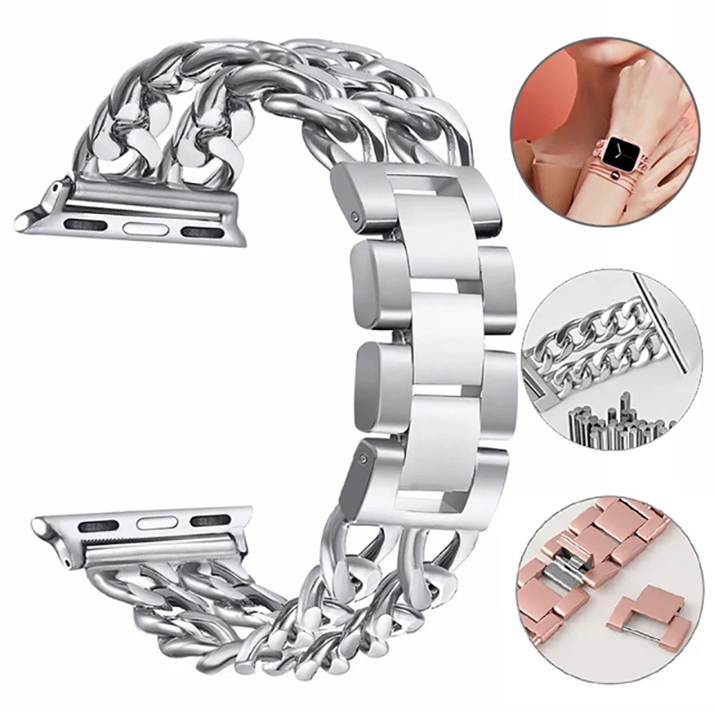 Ремешок из нержавеющей стали для Apple Watch 6, SE, 5, 4, 3, 2, 40 мм, 44 мм, металлический ремешок для iWatch Series 6, 5, 4, 3, 38 мм, 42 мм
