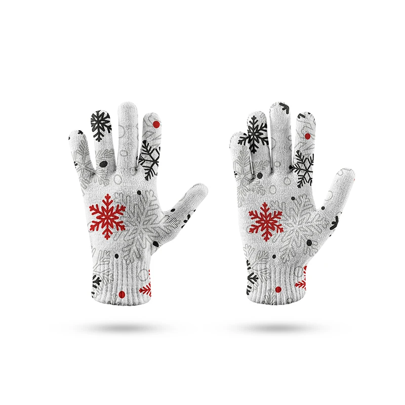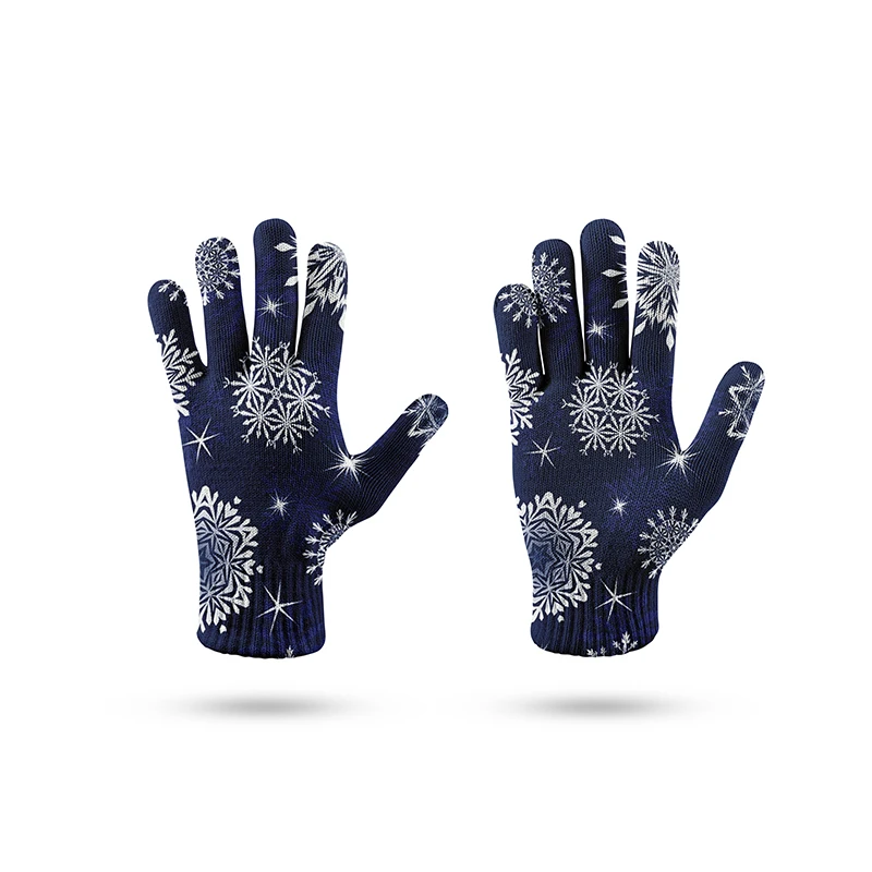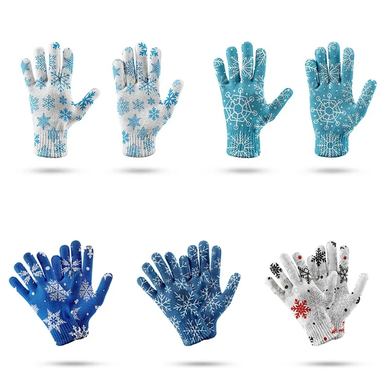 Женские зимние варежки с узором в виде снежинок, мужские теплые эластичные вязаные варежки из искусственной шерсти, зимние спортивные перчатки с закрытыми пальцами, варежки
