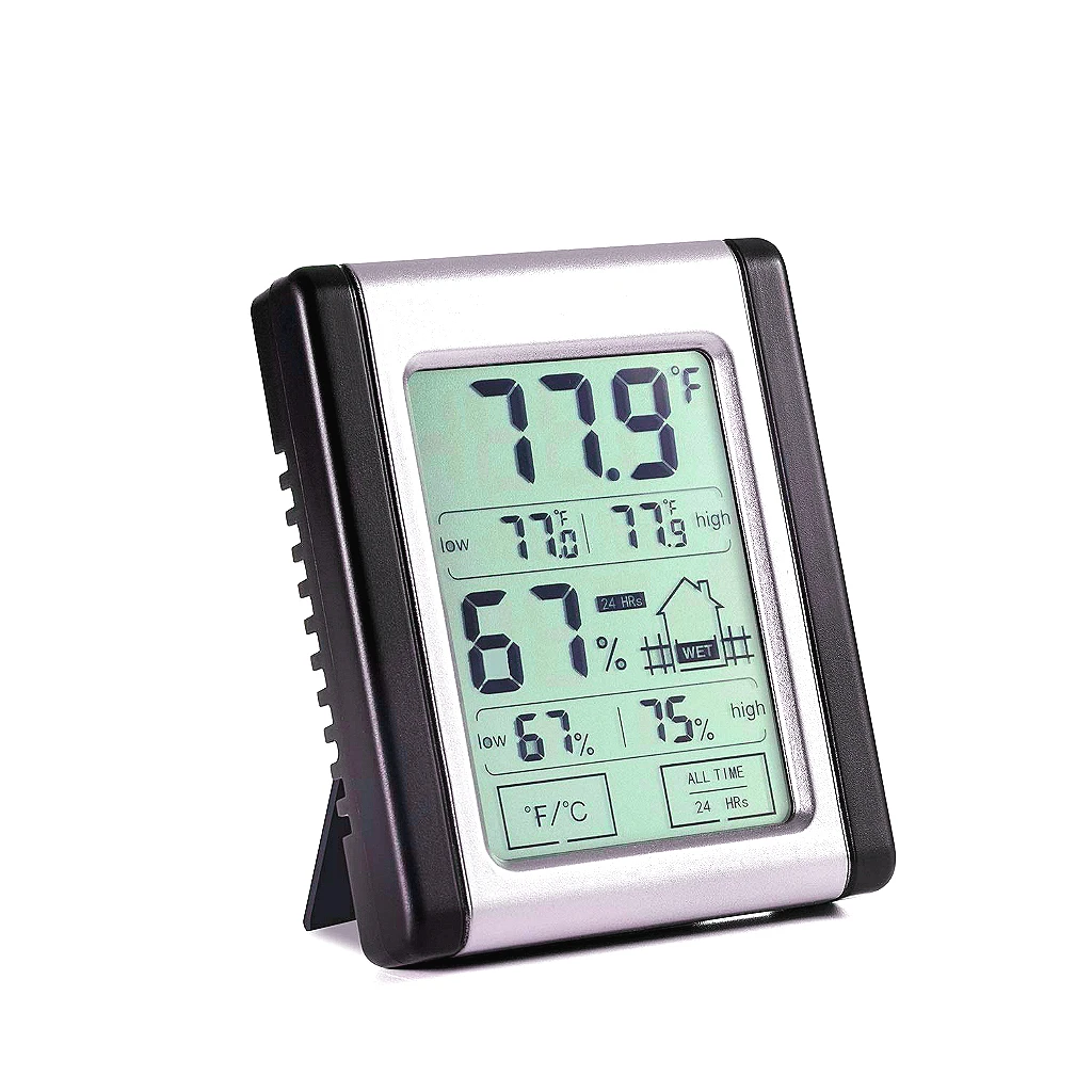 Индикатор уровня влажности: Сухой: менее 30% Ок (комфорт): 30% ~ 60% Влажный: выше 60% Он имеет ультра-Точный считыватель температуры (± 2 ℉) и широкий диапазон температур, от 14 ℉ до 122 ℉; Диапазон влажности от 10% до 99% RH. Счетчик не только обеспечивает надежные показания, но и дает вам ежедневные обновления о рекордных максимумах влажности/температуры и низких температурах всех времен, что позволяет сравнить текущие показания с предыдущими. Этот датчик позволяет легко регулировать уровень температуры и влажности, чтобы поддерживать удобные уровни, создавая более здоровую среду и поддерживая здоровье растений. Магнитная Подложка: магнит на задней части может быть прикреплен к холодильнику или любой металлической поверхности. Конструкция столешницы: устройство оснащено подставкой, которая устанавливает устройство в вертикальном положении под удобным для чтения углом Спецификация: Диапазон измерения температуры: 14,0 ℉ ~ 122,0 ℃ (-10 ℃ ~ 50,0 ℃) Точность температуры: +/- 1 °C(+/-2 ℉) Разрешение температуры: 0,1 ℃ (0,1 ℃) Диапазон отображения влажности: 10%-99% RH Точность влажности: +/- 5% Источник питания: 3 вольт CR2032 кнопка батареи Размеры: 2,9 "x 2,4'' x 0,5'' Товар Вес: 1,8 унций
