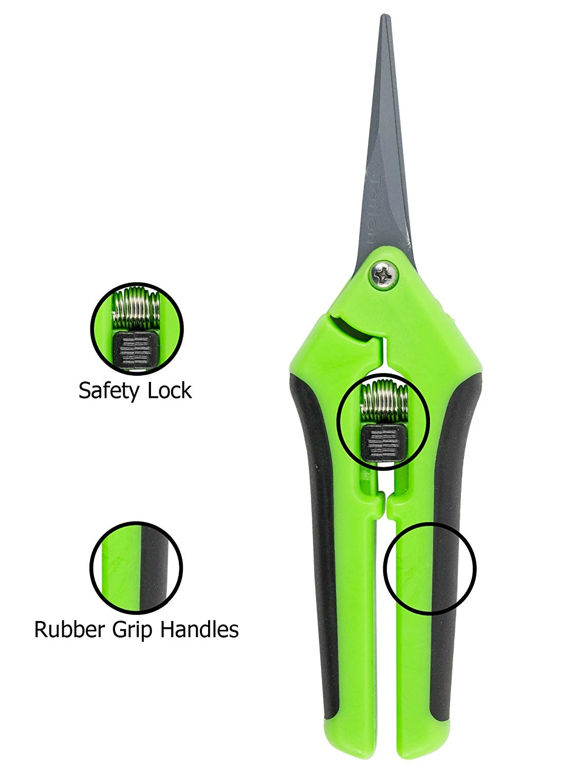 Прямое, тефлоновое, антипригарное лезвие создано, чтобы прослужить независимо от того, что вы обрезаете. Обрезка бутона, розовые кусты, цветочные композиции, овощи, травы, деревья бонсай или любое растение, наши ножницы будут оставаться острыми и чистыми, сохраняя вашу обрезку. Удобная ручка уменьшает усталость рук во время использования и идеально подходит для внутренних, наружных и гидропонных садовников с артритом или тех, кто обладает ограниченной силой рук. Отлично подходит для длительной отделки! Встроенный безопасный замок надежно закрывает острые лезвия до тех пор, пока вы не будете готовы к обрезке, обрезке, снупу и затуханию цветов. Обеспечивает легкое и безопасное хранение ваших цветочных горшков в ящиках для инструментов, комнатах для выращивания, садовых сараях и теплицах. Коррозионно-стойкие лезвия с тефлоновым покрытием будут поддерживать бритву-острые, антипригарные, чистые края в течение многих лет без ржавчины и последовательных порезов. Садовое удовольствие во всех открытых садах, теплицах, гидропонных садах и палатках. Мягкое пружинное действие раскроет и закроет лопасти гладко, прижмет после снипа, чтобы сдержать волдыри и уменьшить нагрузку на руки и запястья. Закончите обрезку и маникюрные клумбы в рекордно короткие сроки без боли, не сжимайте