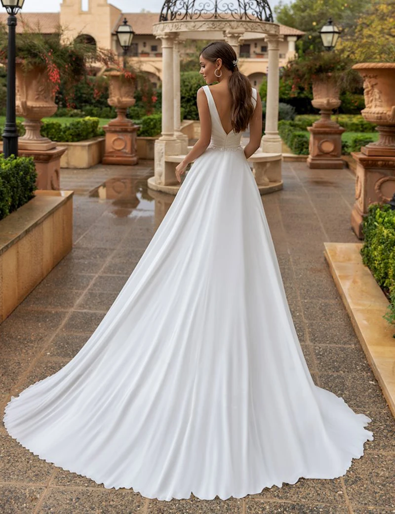 Женское шифоновое платье с бисером, элегантное пляжное свадебное платье в стиле бохо со шлейфом и двойным V-образным вырезом, лето 2021
