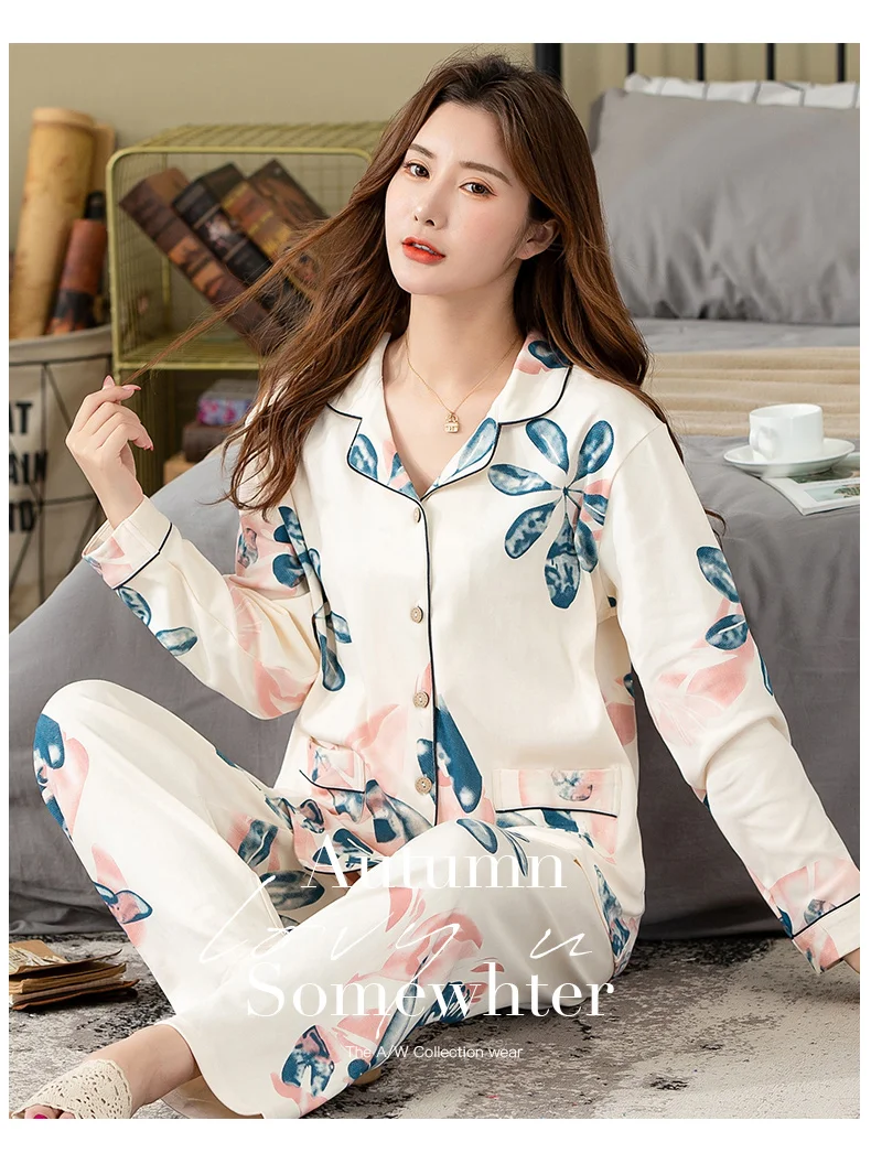Пижама женская хлопковая на пуговицах, комплект одежды для сна, кардиган, домашняя одежда, одежда для сна, большие размеры 4XL, 2 предмета