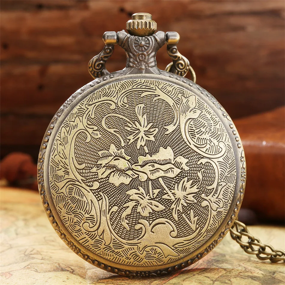 Бронзовые кварцевые карманные часы в стиле стимпанк, с изображением поезда, для охотников, для мужчин, для рождества, ожерелье для подарков