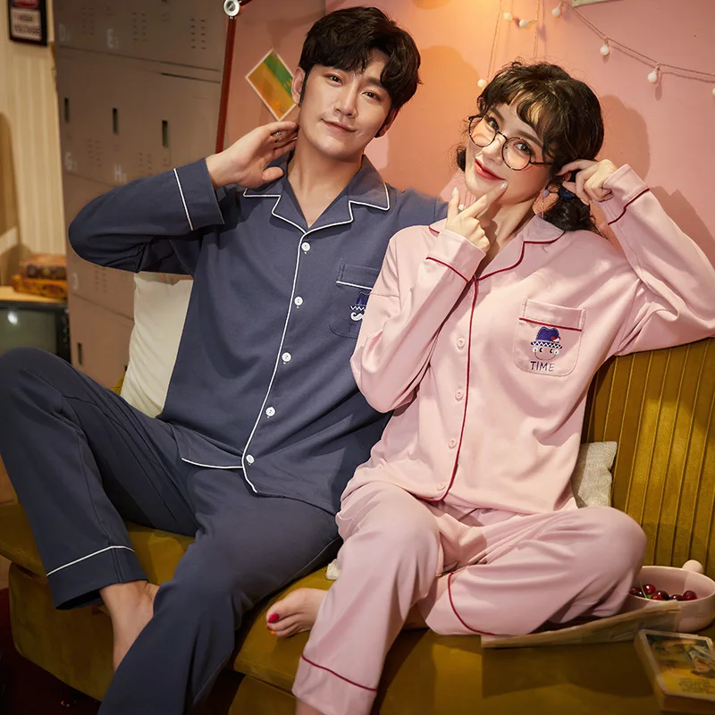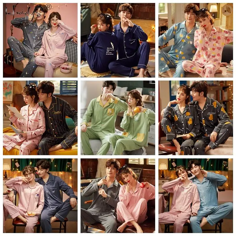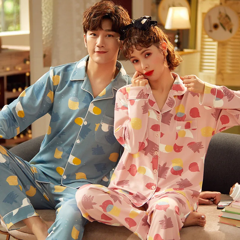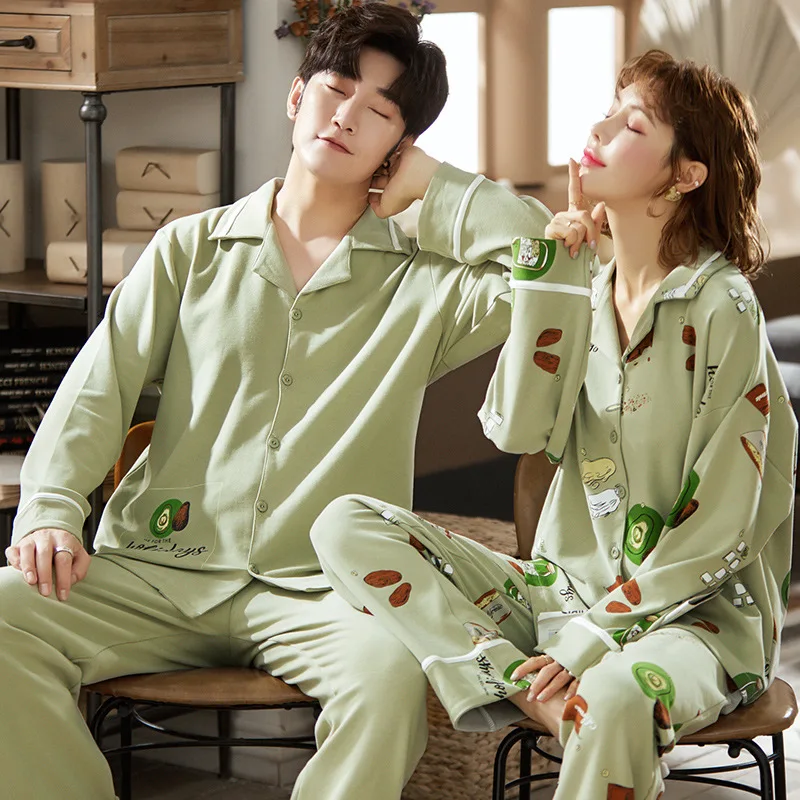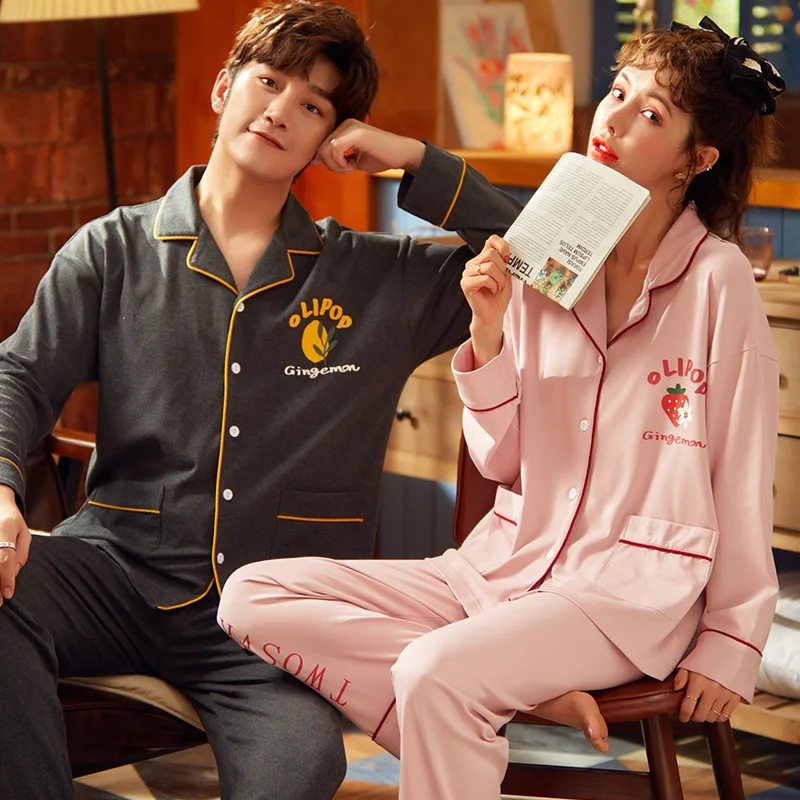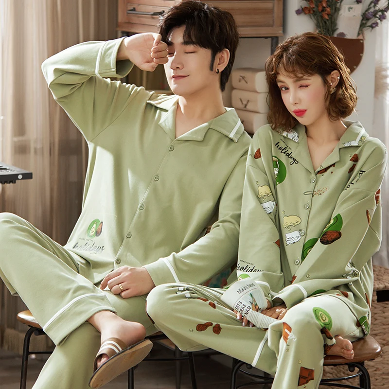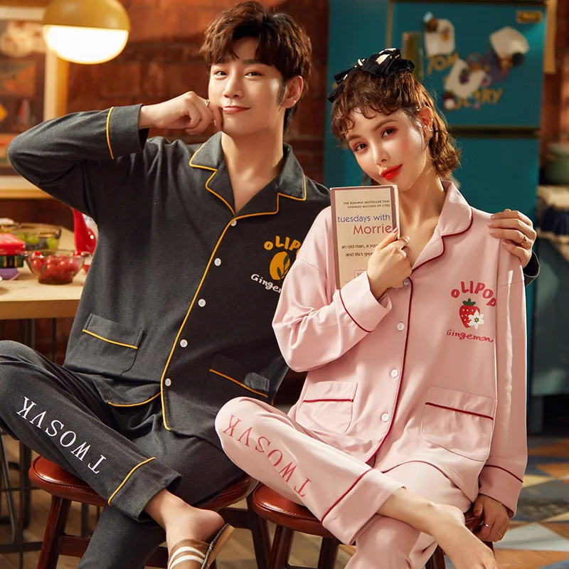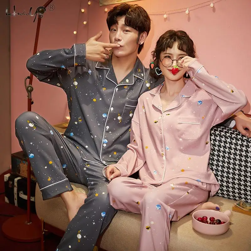 Пижамный комплект для пар, осенний кардиган, пижамы для женщин и мужчин, пижама с длинным рукавом, одежда для сна, семейная Пижама, милая Пижама для отдыха