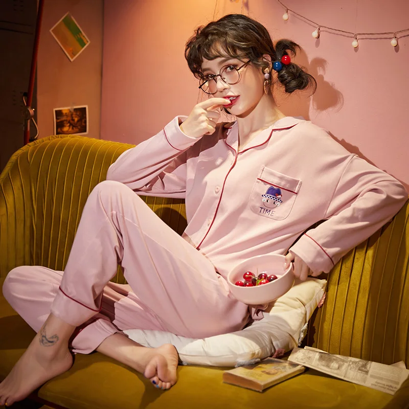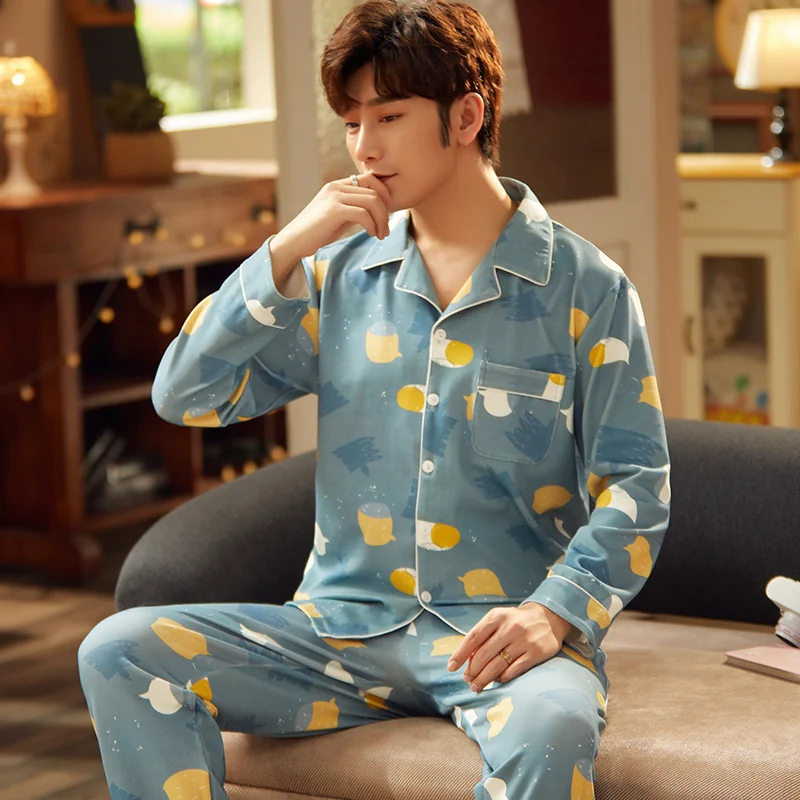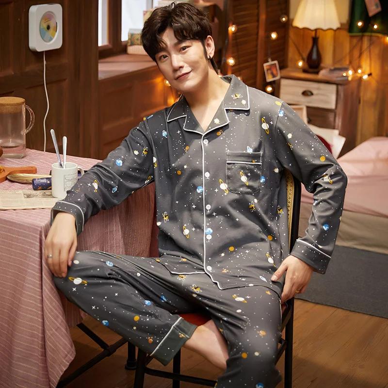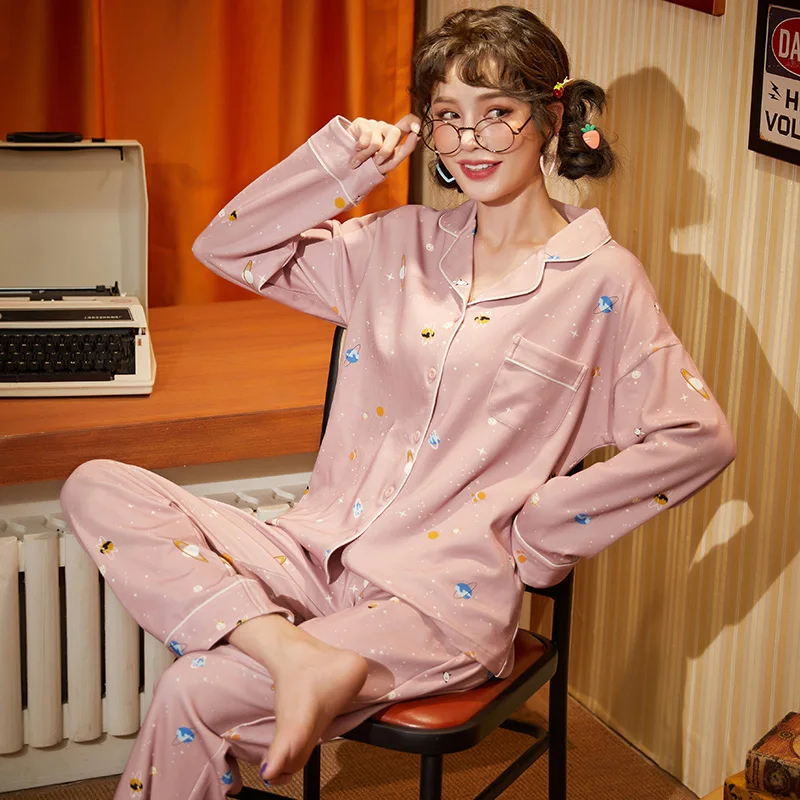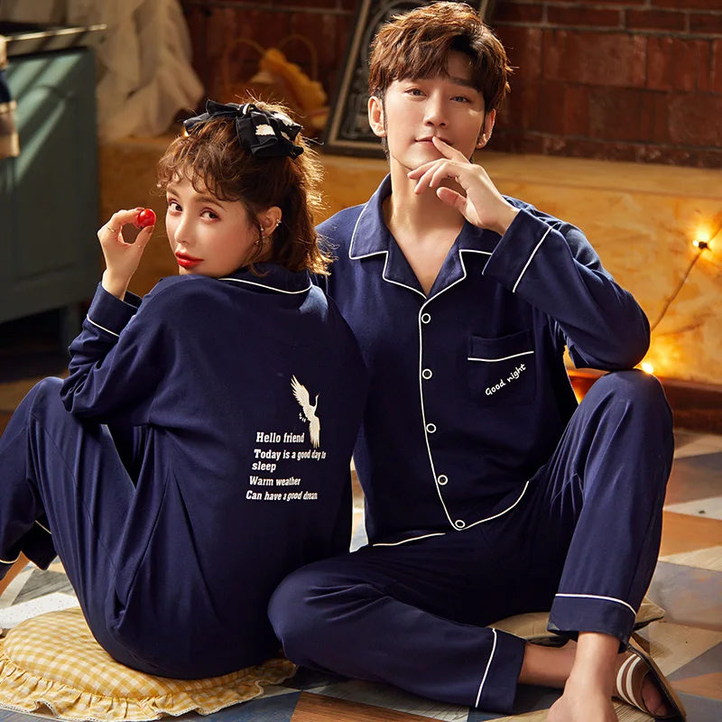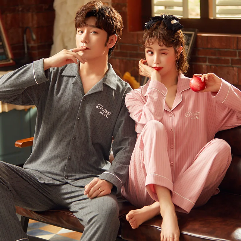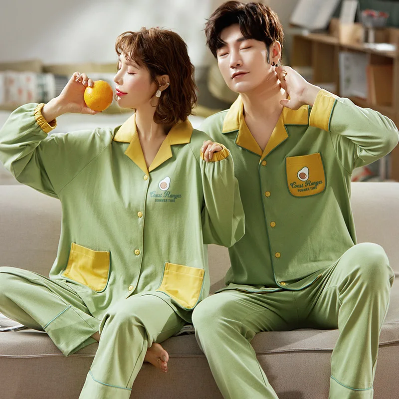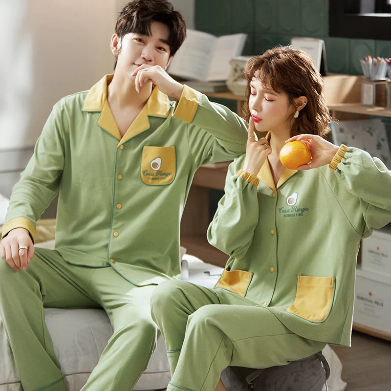 Пижамный комплект для пар, осенний кардиган, пижамы для женщин и мужчин, пижама с длинным рукавом, одежда для сна, семейная Пижама, милая Пижама для отдыха