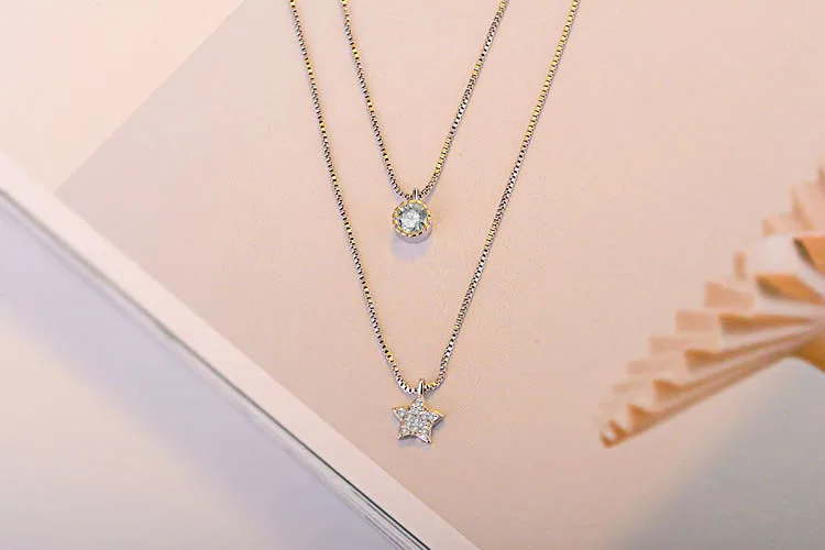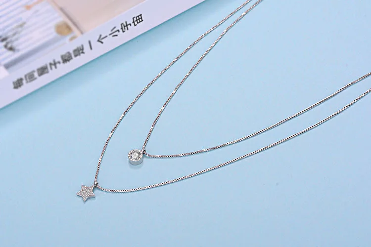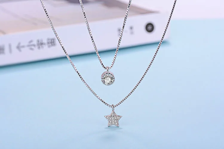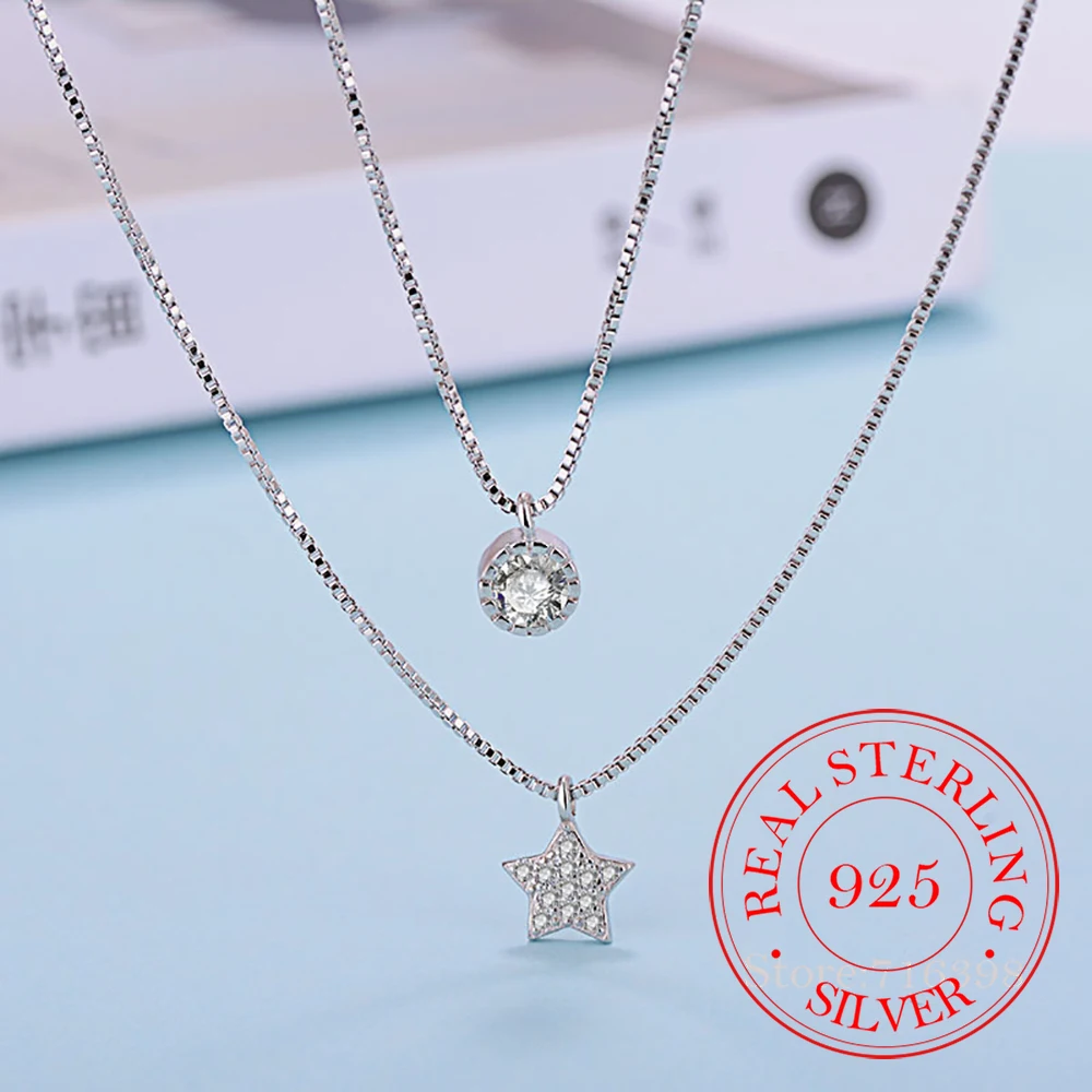 Женское Двухслойное ожерелье из стерлингового серебра 925 пробы с подвеской в виде звезды, романтическое свадебное ювелирное изделие, чокер