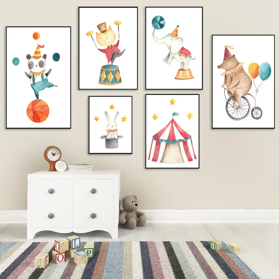 Рождественская Картина на холсте, цирковые животные, Медведь, Кроли...