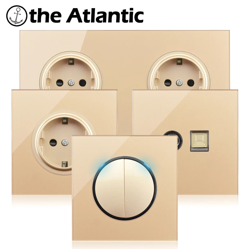 ЕС DE FR USB разъем питания Зарядное устройство на возраст 1, 2, 3, 4 банды кнопочный переключатель лампы светильник настенная розетка с Светодиодный индикатор золото Стекло рамка розетки выключатель света,переключат