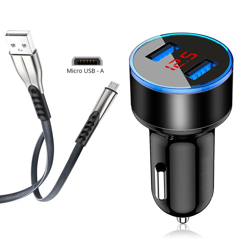 Автомобильное зарядное устройство с Micro USB кабелем, устройство для быстрой зарядки мобильного телефона Xiaomi Redmi Note 6, 5, 4 Pro, 7A, 6A, 5A, 4A, 5X, 4X, 5 Plus, F1, с ЖК-дисплеем