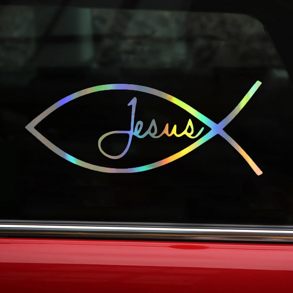 Забавные автомобильные наклейки с Иисусом рыбками, наклейки для христианского стайлинга автомобиля, наклейки на бампер, виниловые наклейки для автомобилей, окон, дверей, 3,18x7,87 дюймов