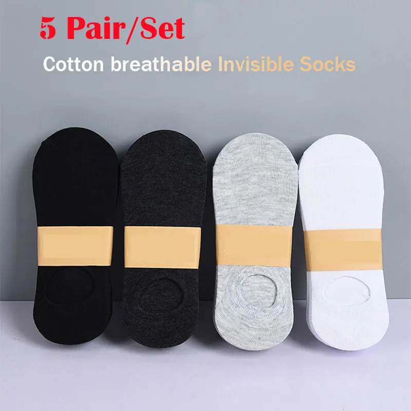Невидимые носки из парупак. хлопка, 5 шт., Нескользящие силиконовые носки, однотонные мужские носки-тапочки, короткие носки, мужские носки