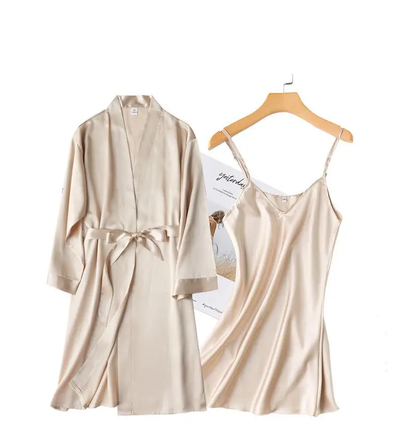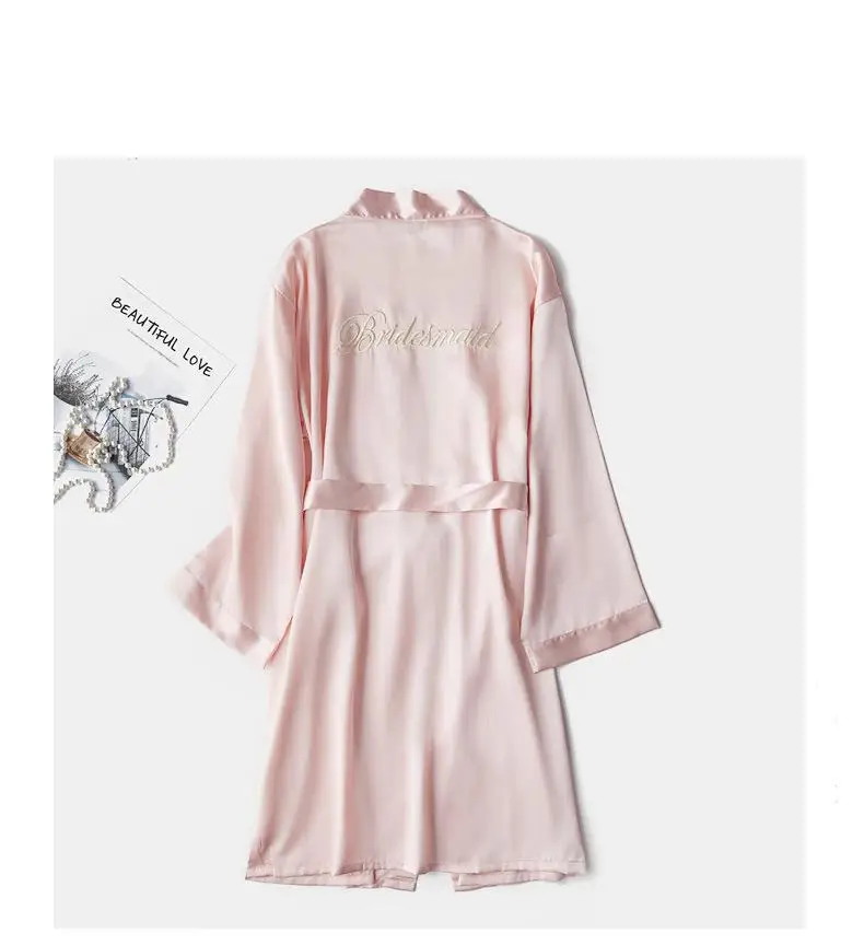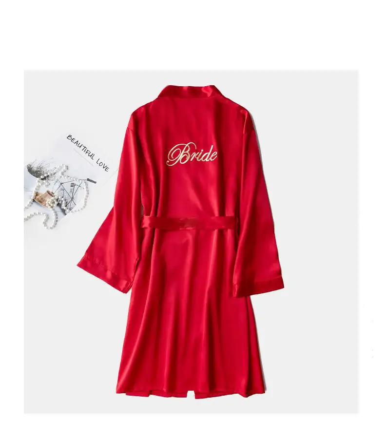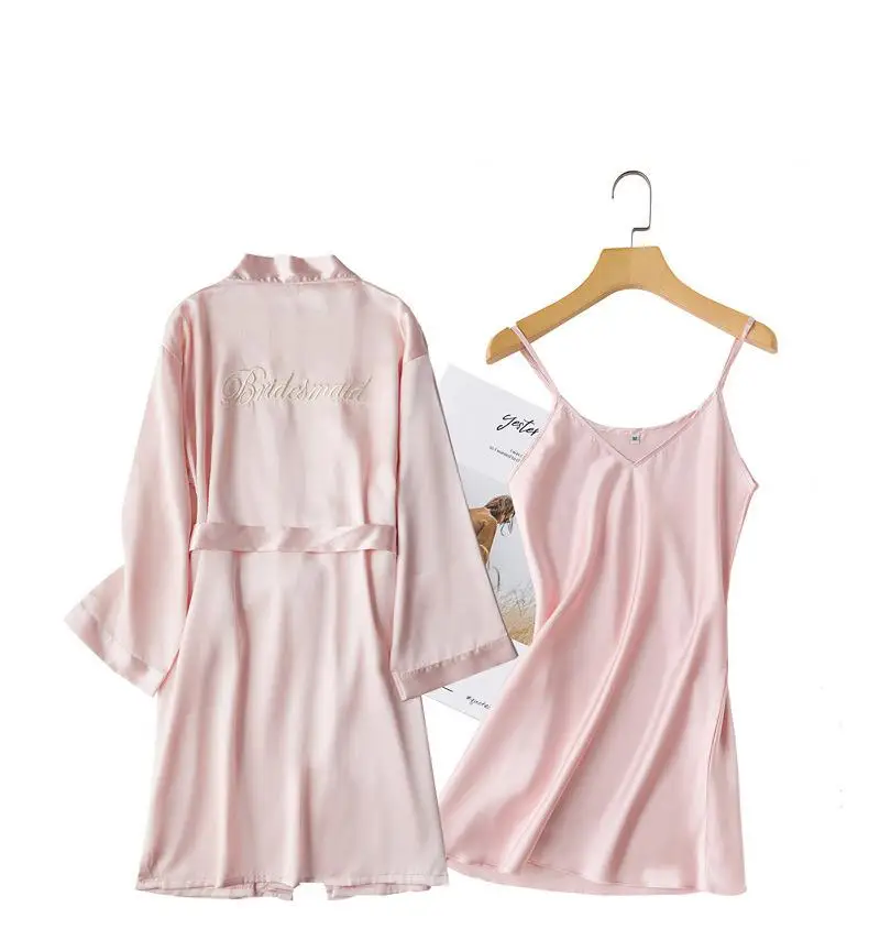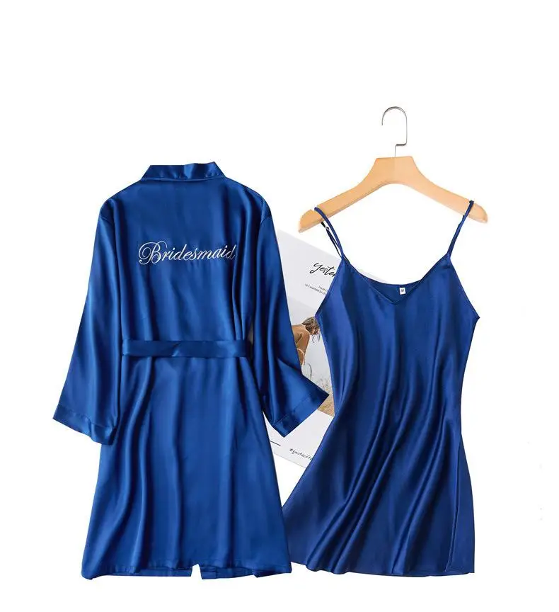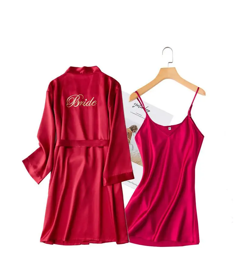 Комплект одежды для невесты из 2 предметов, халат из искусственного шелка с длинным рукавом и надписью, кимоно, Ночнушка с принтом, одежда для сна подружки невесты
