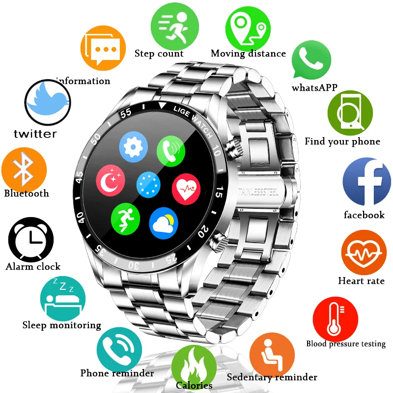 LIGE 2020 Новые смарт-часы Мужские Роскошные многофункциональные ча...